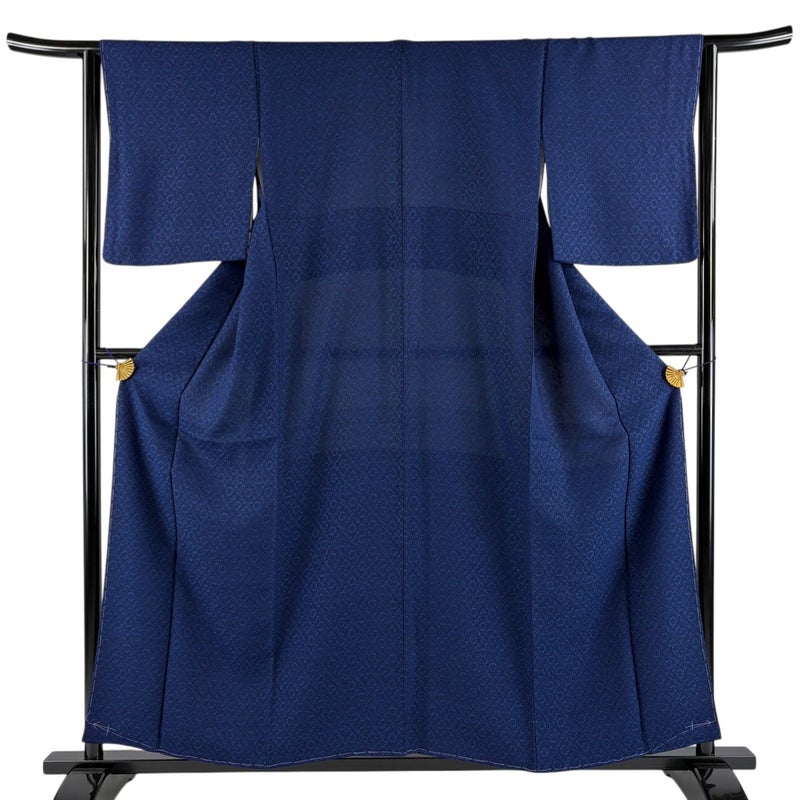 【小紋】 青系 紺色 秀品 A 約150cm~約159cm 裄丈63cm-64cm (M)size 袖丈49cm 7990-9980 美品 二万以下