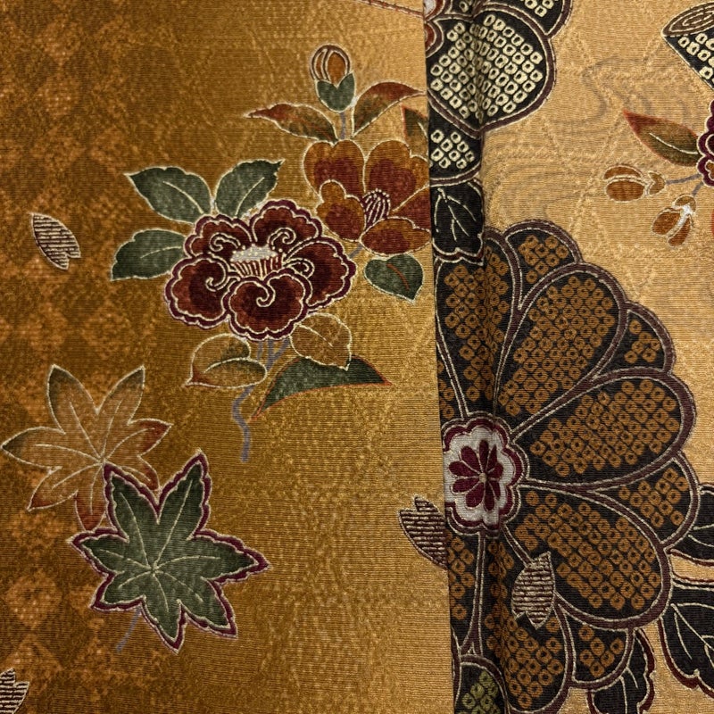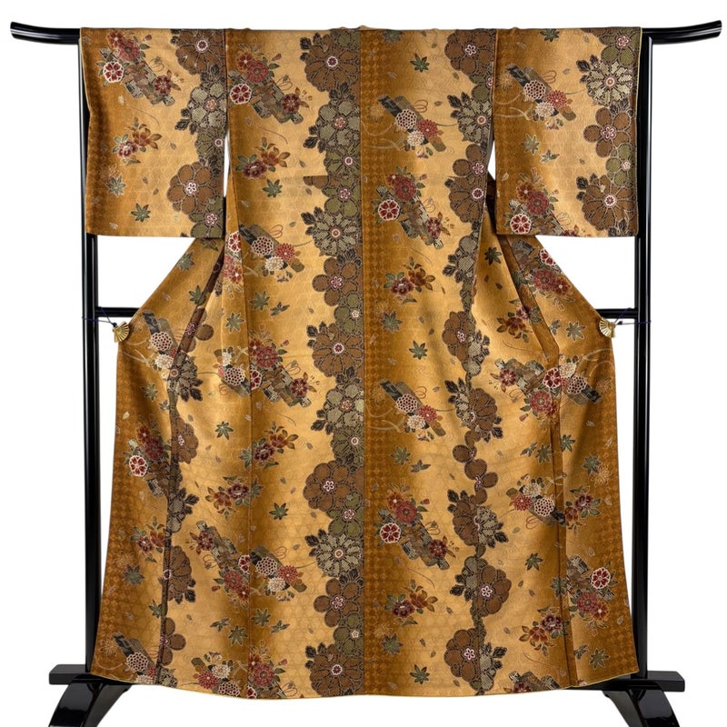 【着物ランク】秀品 【素材】正絹 【身丈】約160cm 【裄丈】約65cm 【袖丈】約49.5cm 【袖幅】約33.5cm 【前幅】約23cm 【後幅】約28cm 【サイズ】M 【着物仕立て】袷 【着用時期】10~5月 【状態ランク】ランクA 【着物着用シーン】気軽なパーティー、観劇、食事会、正月、気軽なお茶会、街着