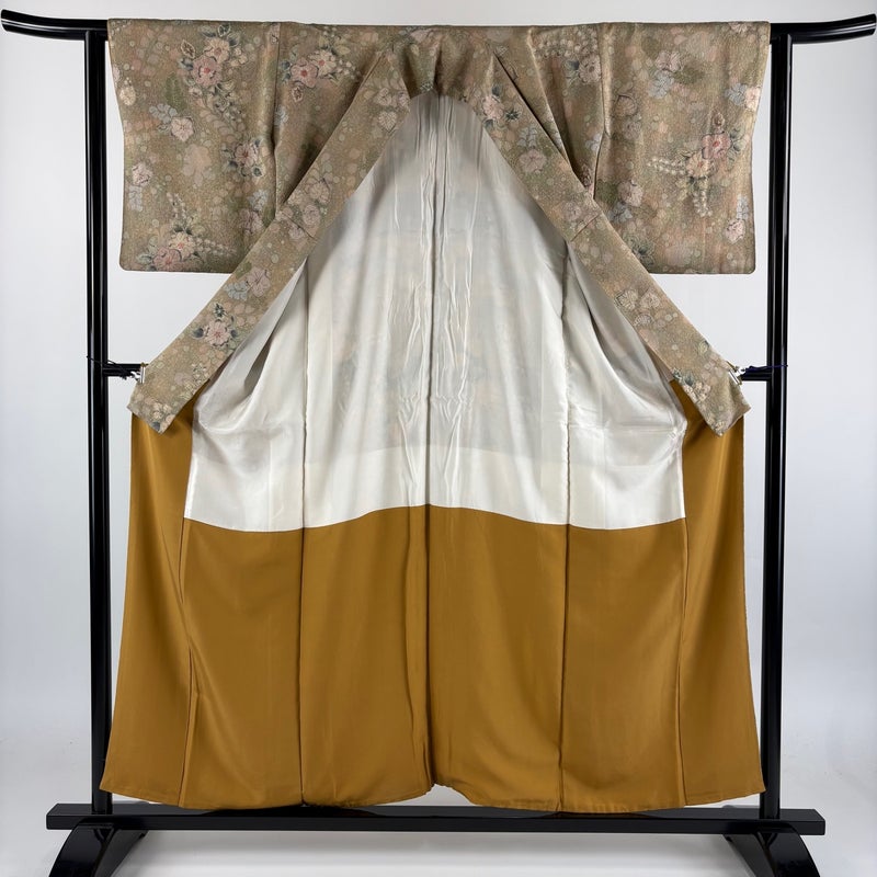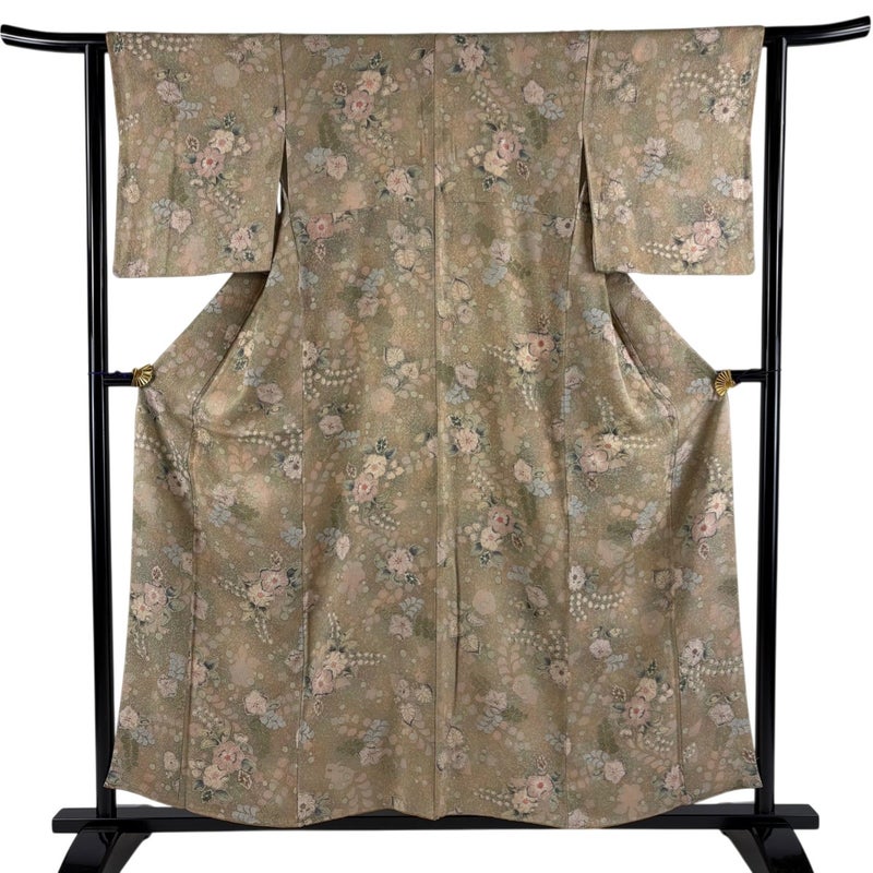 【着物ランク】秀品 【素材】正絹 【身丈】約156cm 【裄丈】約62cm 【袖丈】約47.5cm 【袖幅】約33.5cm 【前幅】約24.5cm 【後幅】約29.5cm 【サイズ】S 【着物仕立て】袷 【着用時期】10~5月 【状態ランク】ランクB 【着物着用シーン】気軽なパーティー、観劇、食事会、正月、気軽なお茶会、街着