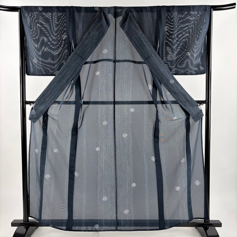 【着物ランク】秀品 【素材】化繊 【身丈】約161.5cm 【裄丈】約65.5cm 【袖丈】約48.5cm 【袖幅】約33cm 【前幅】約23.5cm 【後幅】約30.5cm 【サイズ】M 【着物仕立て】薄物 【着用時期】7~8月 【状態ランク】ランクA 【着物着用シーン】気軽なパーティー、観劇、食事会、正月、気軽なお茶会、街着