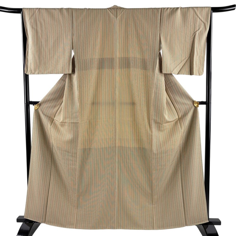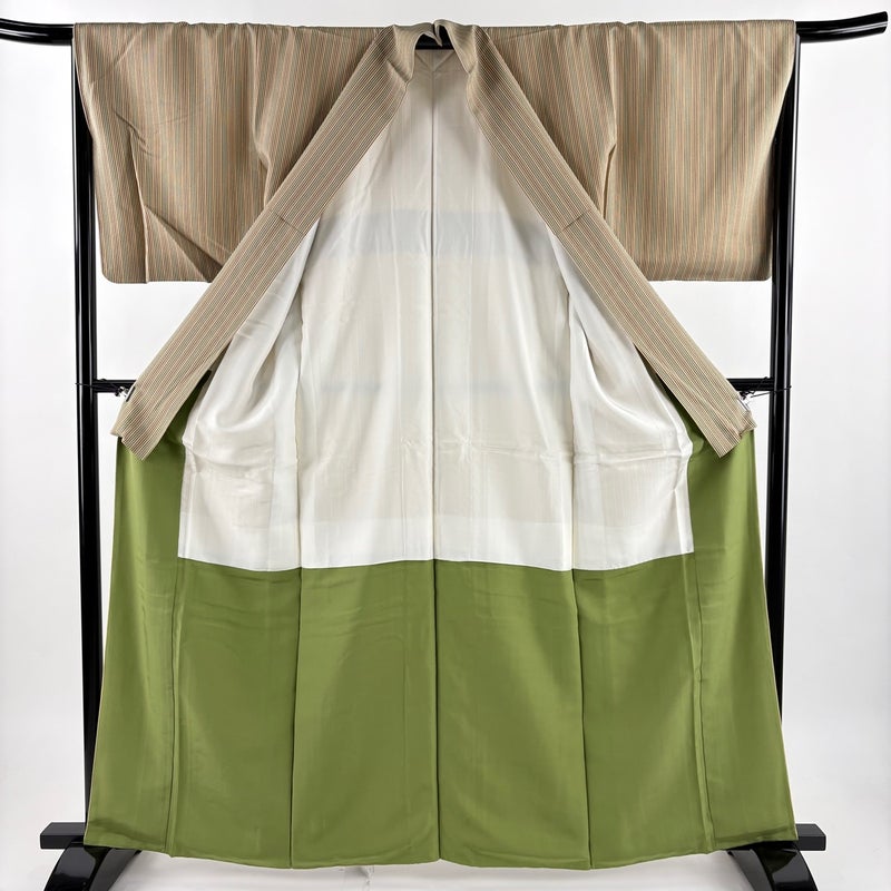 【小紋】 白系 ベージュ 秀品 A 約160cm~約169cm 裄丈66cm (M)size 袖丈49cm 7990-9980 美品 二万以下