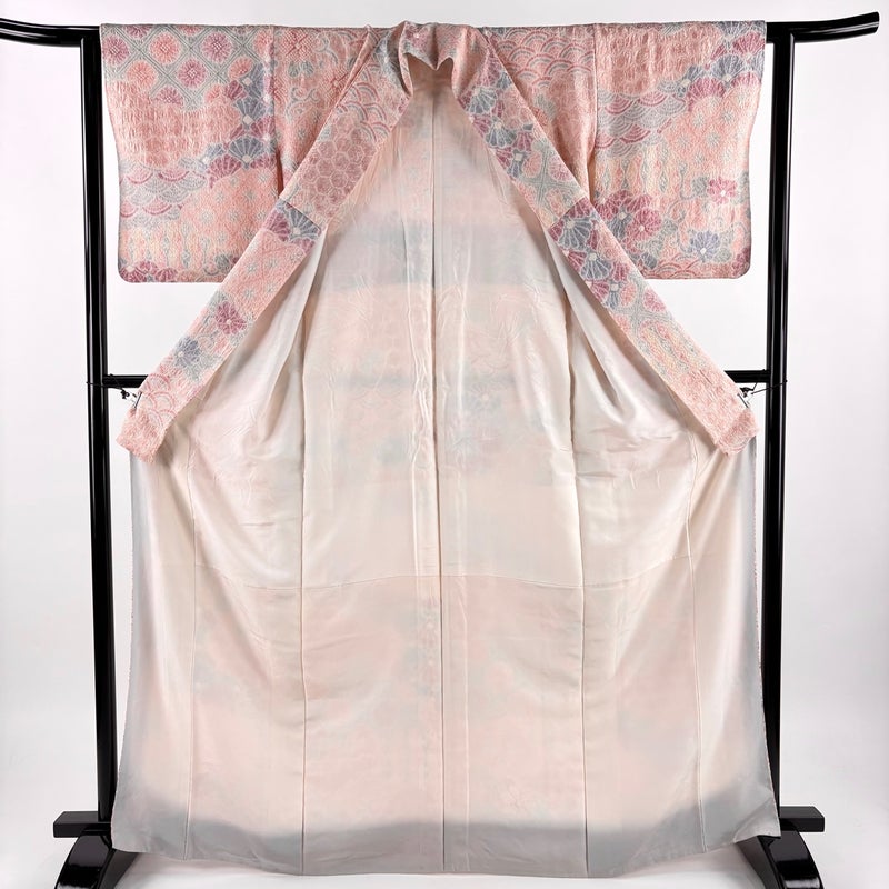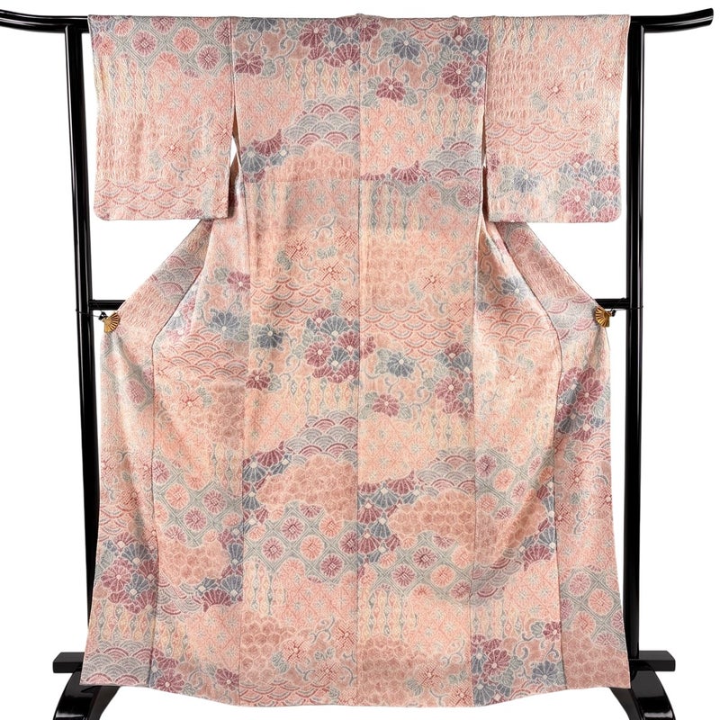 【着物ランク】秀品 【素材】正絹 【身丈】約167cm 【裄丈】約62cm 【袖丈】約49cm 【袖幅】約32cm 【前幅】約23.5cm 【後幅】約28.5cm 【サイズ】S 【着物仕立て】袷 【着用時期】10~5月 【状態ランク】ランクB 【着物着用シーン】気軽なパーティー、観劇、食事会、正月、気軽なお茶会、街着