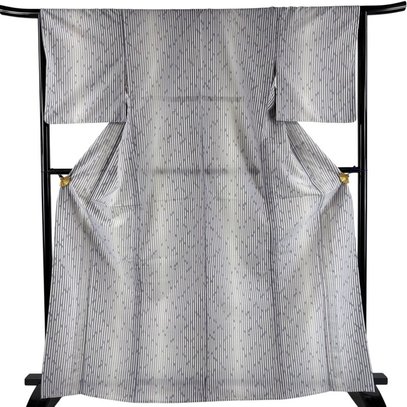 【着物ランク】優品 【素材】化繊 【身丈】約169cm 【裄丈】約65cm 【袖丈】約49cm 【袖幅】約33cm 【前幅】約24.5cm 【後幅】約30cm 【サイズ】M 【着物仕立て】単衣 【着用時期】6/9月 【状態ランク】ランクA 【着物着用シーン】気軽なパーティー、観劇、食事会、正月、気軽なお茶会、街着