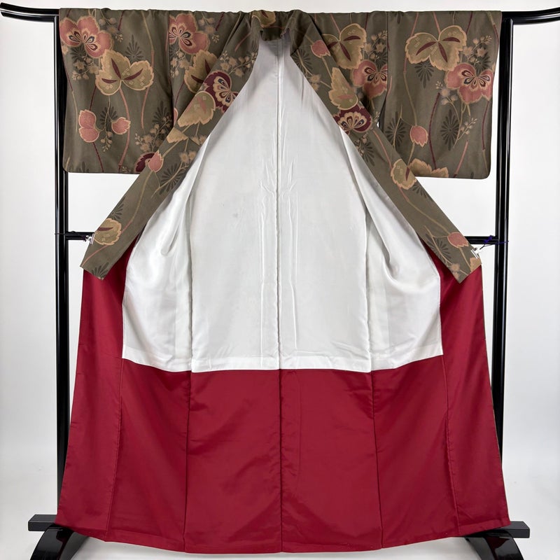 【小紋】 茶系 茶緑色 優品 B 約160cm~約169cm 裄丈65cm (M)size 袖丈49cm -3980 二万以下