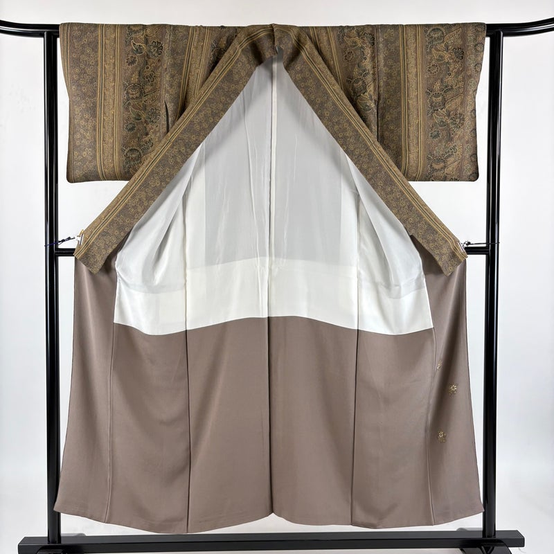 【小紋】 灰色系 灰茶 優品 B 約150cm~約159cm 裄丈62cm以下 (S)size 袖丈47cm -3980 二万以下