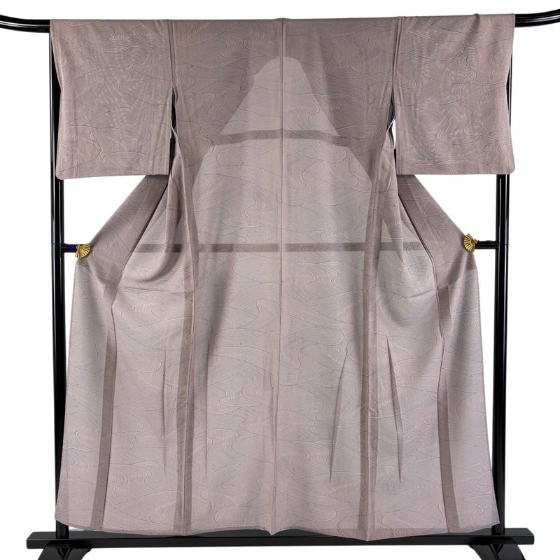 【着物ランク】優品 【素材】正絹 【身丈】約156cm 【裄丈】約67cm 【袖丈】約48.5cm 【袖幅】約33.5cm 【前幅】約25cm 【後幅】約30cm 【サイズ】M 【着物仕立て】薄物 【着用時期】7~8月 【状態ランク】ランクB 【着物着用シーン】気軽なパーティー、観劇、食事会、正月、気軽なお茶会、街着