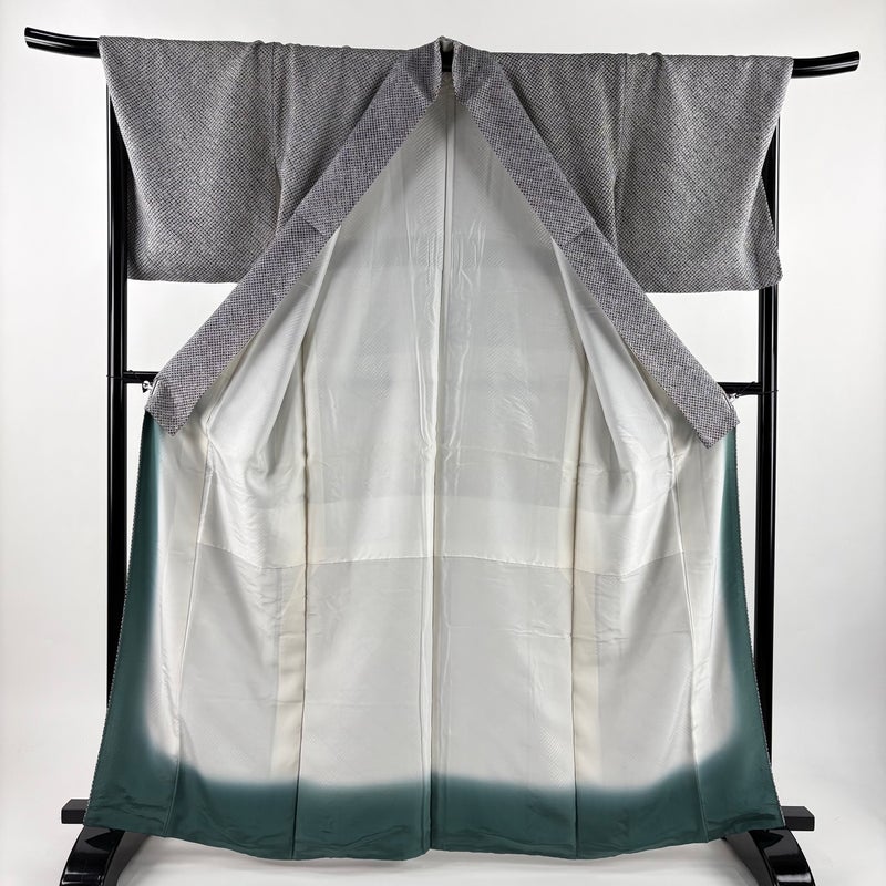 【着物ランク】優品 【素材】正絹 【身丈】約164cm 【裄丈】約70cm 【袖丈】約48.5cm 【袖幅】約36cm 【前幅】約26cm 【後幅】約30cm 【サイズ】L 【着物仕立て】袷 【着用時期】10~5月 【状態ランク】ランクA 【着物着用シーン】気軽なパーティー、観劇、食事会、正月、気軽なお茶会、街着
