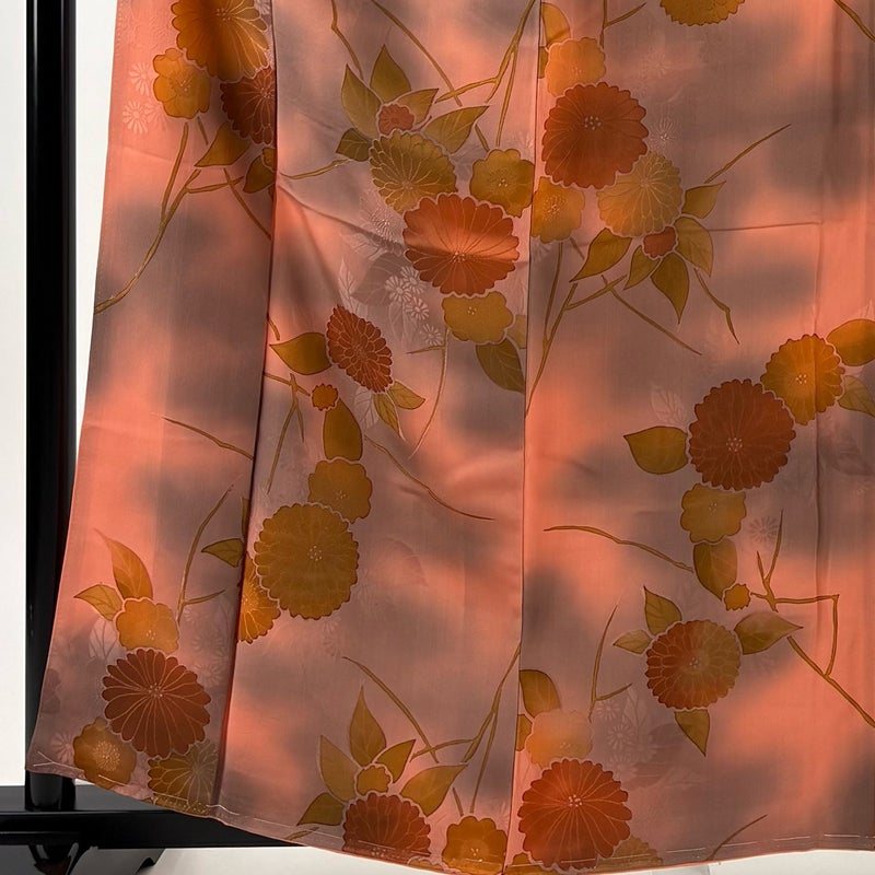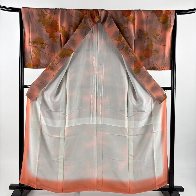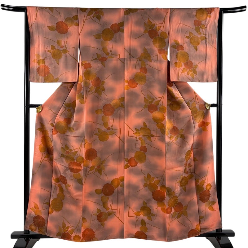 【着物ランク】優品 【素材】正絹 【身丈】約160cm 【裄丈】約64cm 【袖丈】約52.5cm 【袖幅】約33.5cm 【前幅】約24cm 【後幅】約29.5cm 【サイズ】M 【着物仕立て】袷 【着用時期】10~5月 【状態ランク】ランクB 【着物着用シーン】気軽なパーティー、観劇、食事会、正月、気軽なお茶会、街着