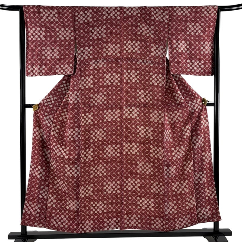 【小紋】 紫系 赤紫 優品 B 約150cm~約159cm 裄丈65cm (M)size 袖丈48cm -3980 二万以下