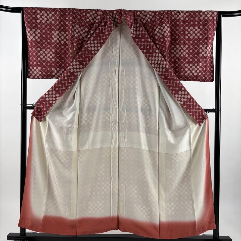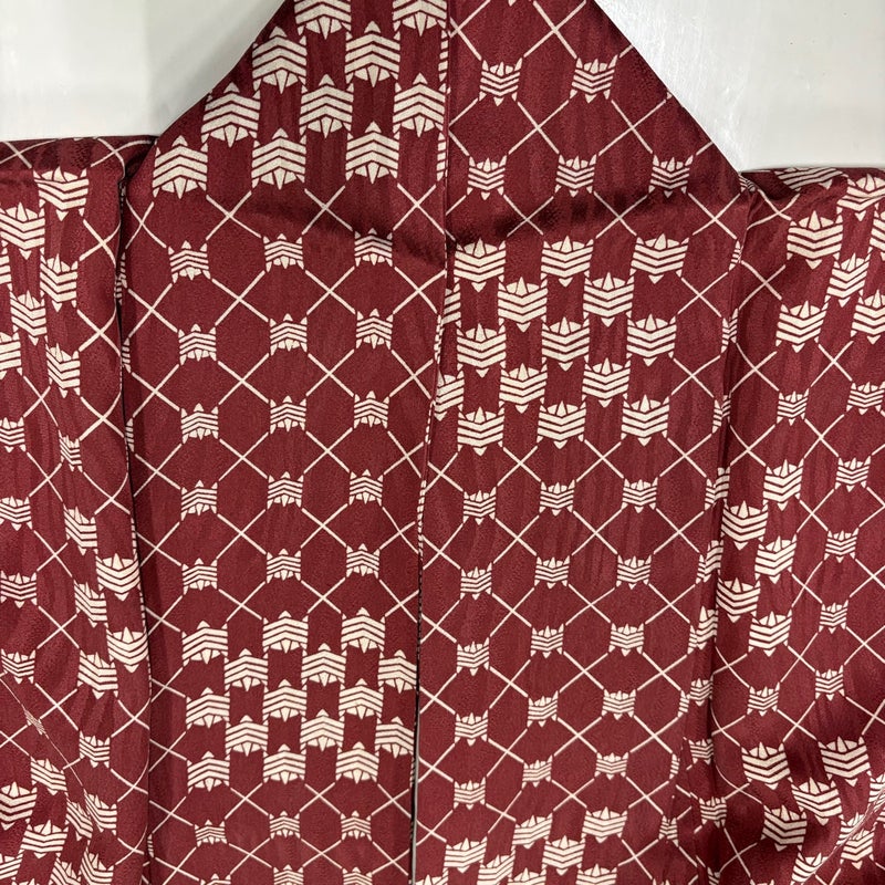 【着物ランク】優品 【素材】正絹 【身丈】約154.5cm 【裄丈】約65cm 【袖丈】約48.5cm 【袖幅】約33cm 【前幅】約24.5cm 【後幅】約30cm 【サイズ】M 【着物仕立て】袷 【着用時期】10~5月 【状態ランク】ランクB 【着物着用シーン】気軽なパーティー、観劇、食事会、正月、気軽なお茶会、街着