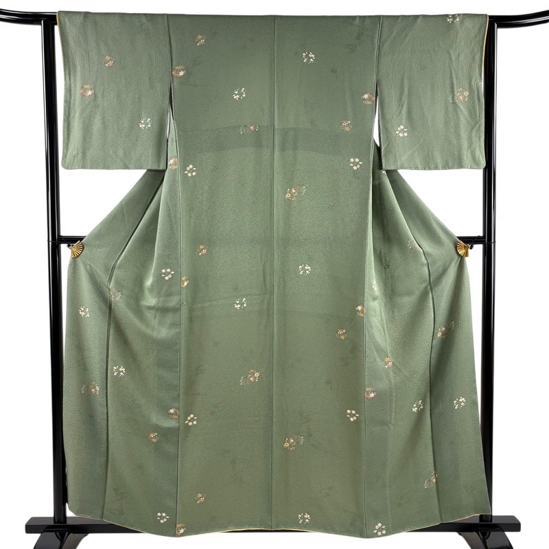 【小紋】 緑系 緑 優品 B 約150cm~約159cm 裄丈63cm-64cm (S)size 袖丈48cm -3980 二万以下