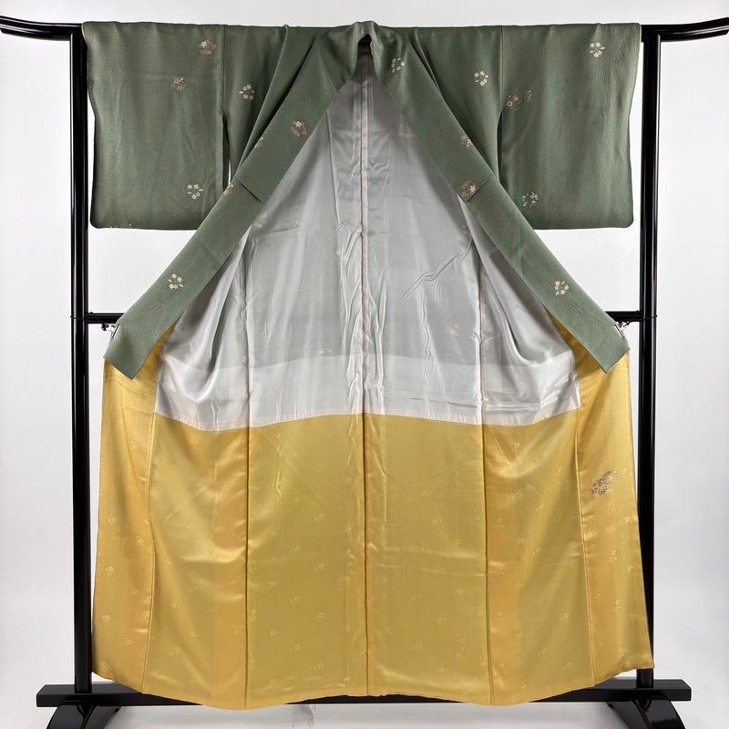 【着物ランク】優品 【素材】正絹 【身丈】約158.5cm 【裄丈】約63cm 【袖丈】約48cm 【袖幅】約32cm 【前幅】約24cm 【後幅】約29.5cm 【サイズ】S 【着物仕立て】袷 【着用時期】10~5月 【状態ランク】ランクB 【着物着用シーン】気軽なパーティー、観劇、食事会、正月、気軽なお茶会、街着