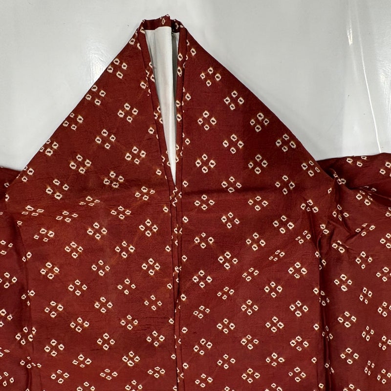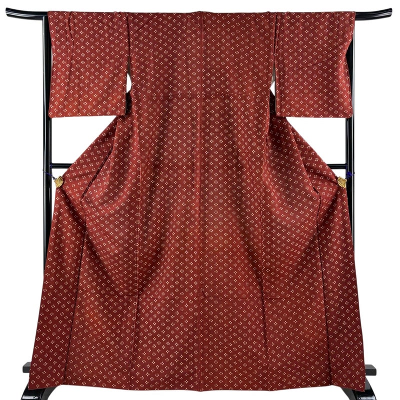 【小紋】 赤系 赤茶 逸品 B 約160cm~約169cm 裄丈66cm (M)size 袖丈48cm 30000- 五万以上