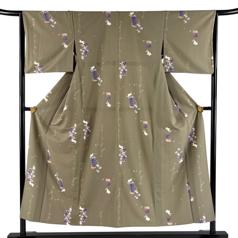 【小紋】 灰色系 灰緑 優品 B 約150cm~約159cm 裄丈65cm (M)size 袖丈46cm以下 4000-7980 二万以下