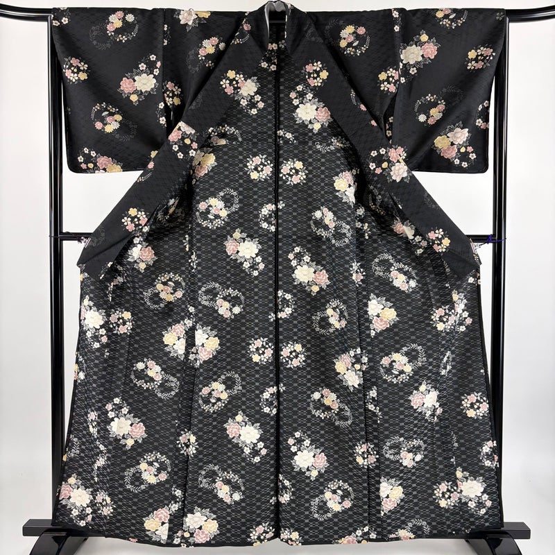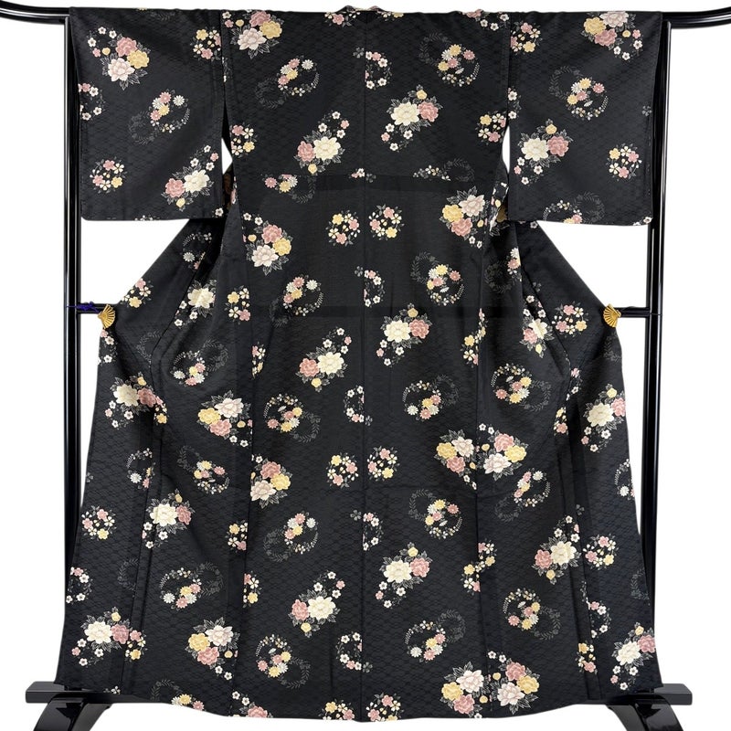 【小紋】 黒系 黒 優品 A 約160cm~約169cm 裄丈66cm (M)size 袖丈49cm 4000-7980 美品 二万以下