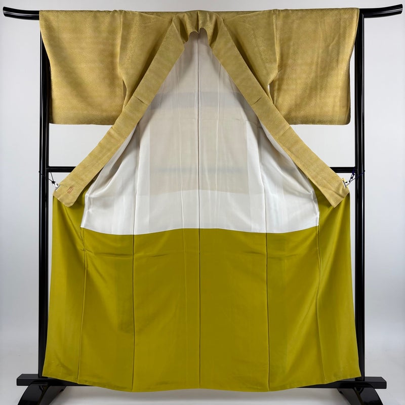 【小紋】 黄色系 薄黄土色 優品 A 約160cm~約169cm 裄丈66cm (M)size 袖丈48cm 4000-7980 美品 二万以下