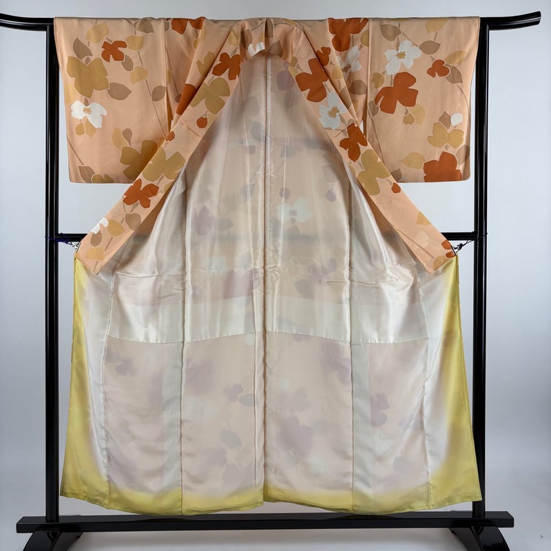 【着物ランク】優品 【素材】正絹 【身丈】約153.5cm 【裄丈】約65cm 【袖丈】約50.5cm 【袖幅】約33.5cm 【前幅】約24cm 【後幅】約29cm 【サイズ】M 【着物仕立て】袷 【着用時期】10~5月 【状態ランク】ランクB 【着物着用シーン】気軽なパーティー、観劇、食事会、正月、気軽なお茶会、街着