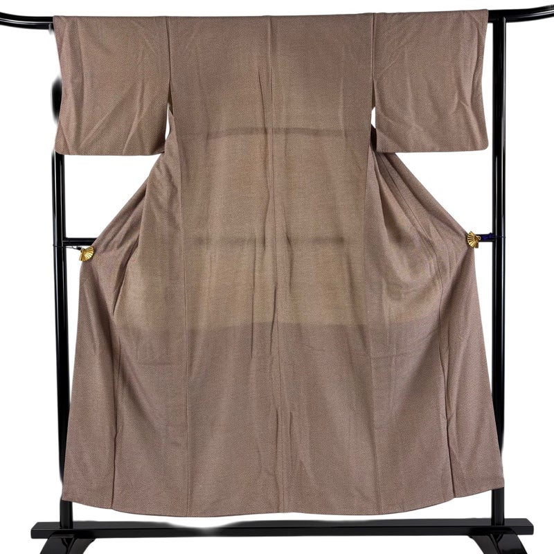【着物ランク】優品 【素材】正絹 【身丈】約152cm 【裄丈】約62cm 【袖丈】約43.5cm 【袖幅】約32.5cm 【前幅】約23.5cm 【後幅】約30cm 【サイズ】S 【着物仕立て】袷 【着用時期】10~5月 【状態ランク】ランクB 【着物着用シーン】気軽なパーティー、観劇、食事会、正月、気軽なお茶会、街着