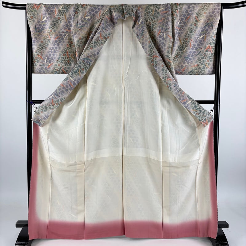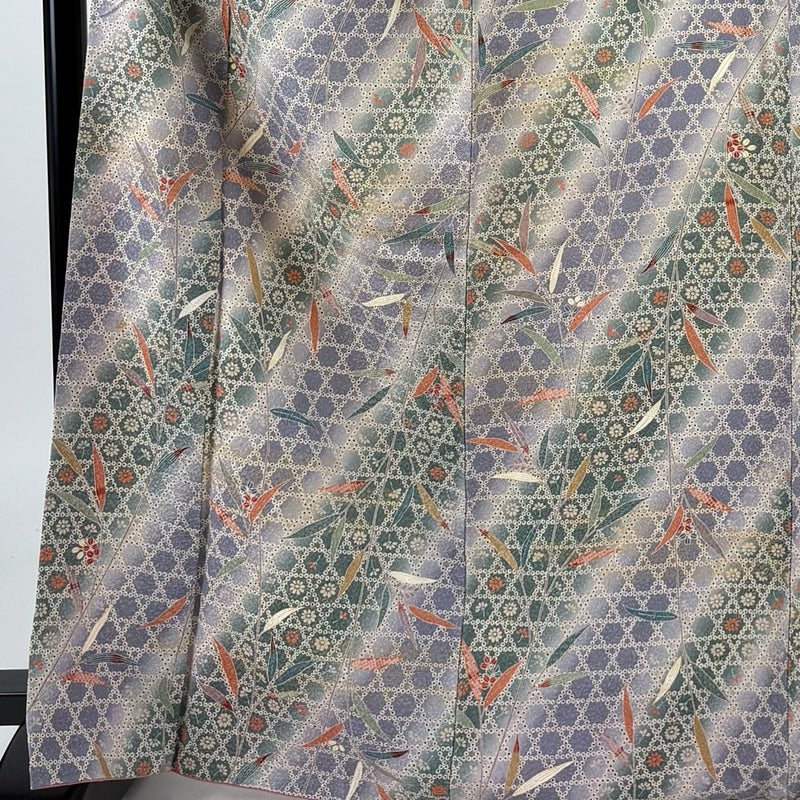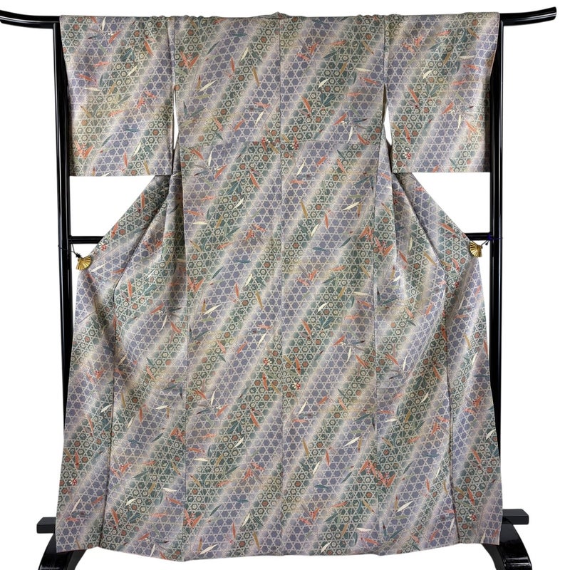 【着物ランク】優品 【素材】正絹 【身丈】約166cm 【裄丈】約65cm 【袖丈】約48.5cm 【袖幅】約33.5cm 【前幅】約26.5cm 【後幅】約30.5cm 【サイズ】M 【着物仕立て】袷 【着用時期】10~5月 【状態ランク】ランクB 【着物着用シーン】気軽なパーティー、観劇、食事会、正月、気軽なお茶会、街着