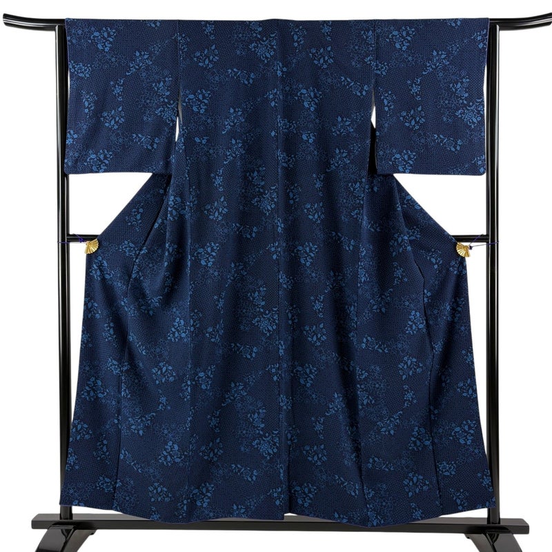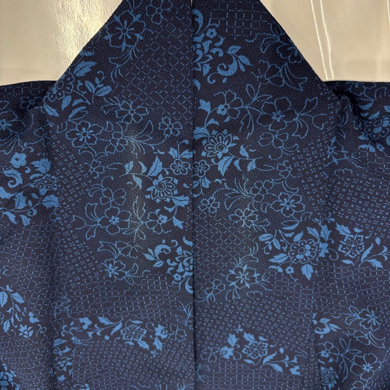 【小紋】 青系 紺色 秀品 B 約150cm~約159cm 裄丈63cm-64cm (M)size 袖丈49cm 4000-7980 二万以下