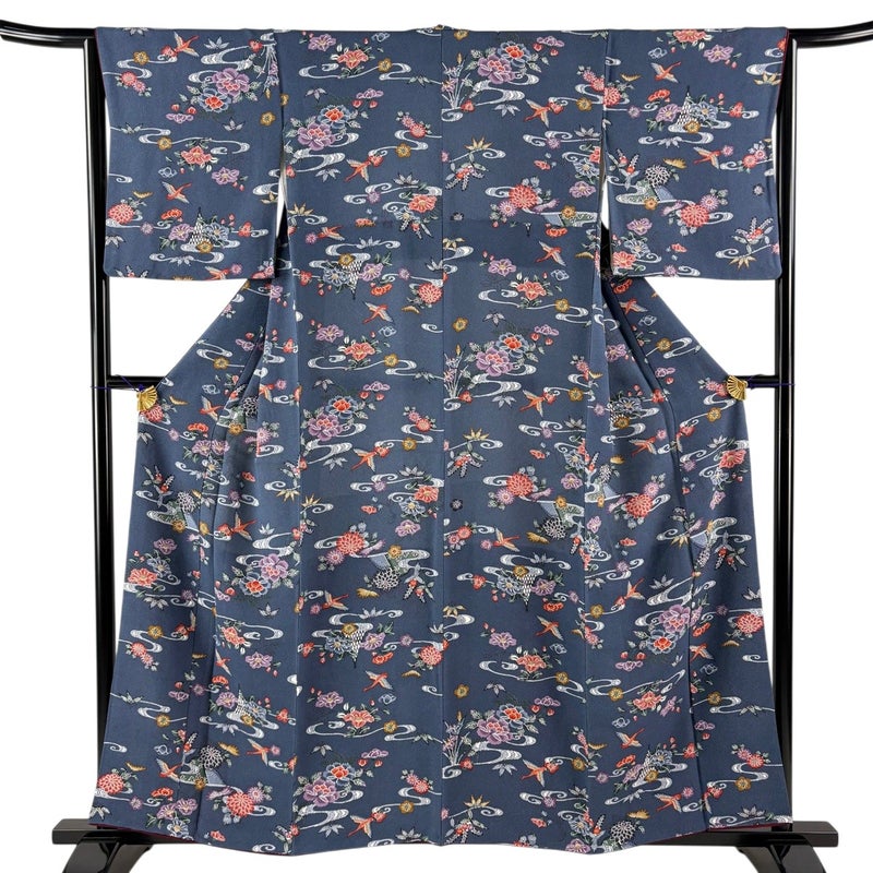 【着物ランク】秀品 【素材】正絹 【身丈】約157cm 【裄丈】約64cm 【袖丈】約48cm 【袖幅】約33.5cm 【前幅】約23.5cm 【後幅】約29.5cm 【サイズ】M 【着物仕立て】袷 【着用時期】10~5月 【状態ランク】ランクB 【着物着用シーン】気軽なパーティー、観劇、食事会、正月、気軽なお茶会、街着