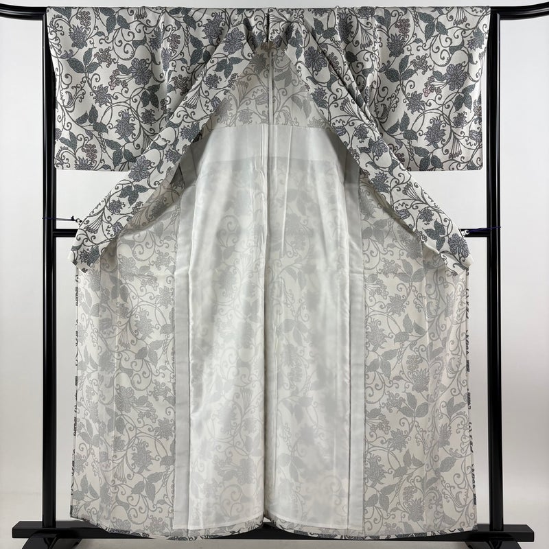 【小紋】 灰色系 灰白 秀品 A 約150cm~約159cm 裄丈65cm (M)size 袖丈50cm-60cm 9990-29990 美品 二万以下