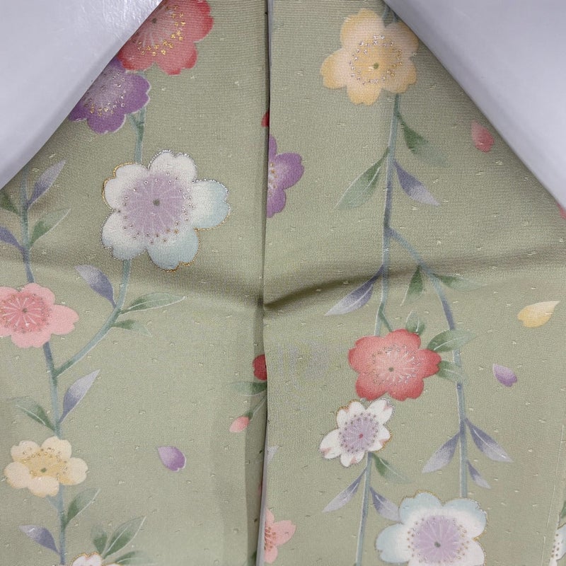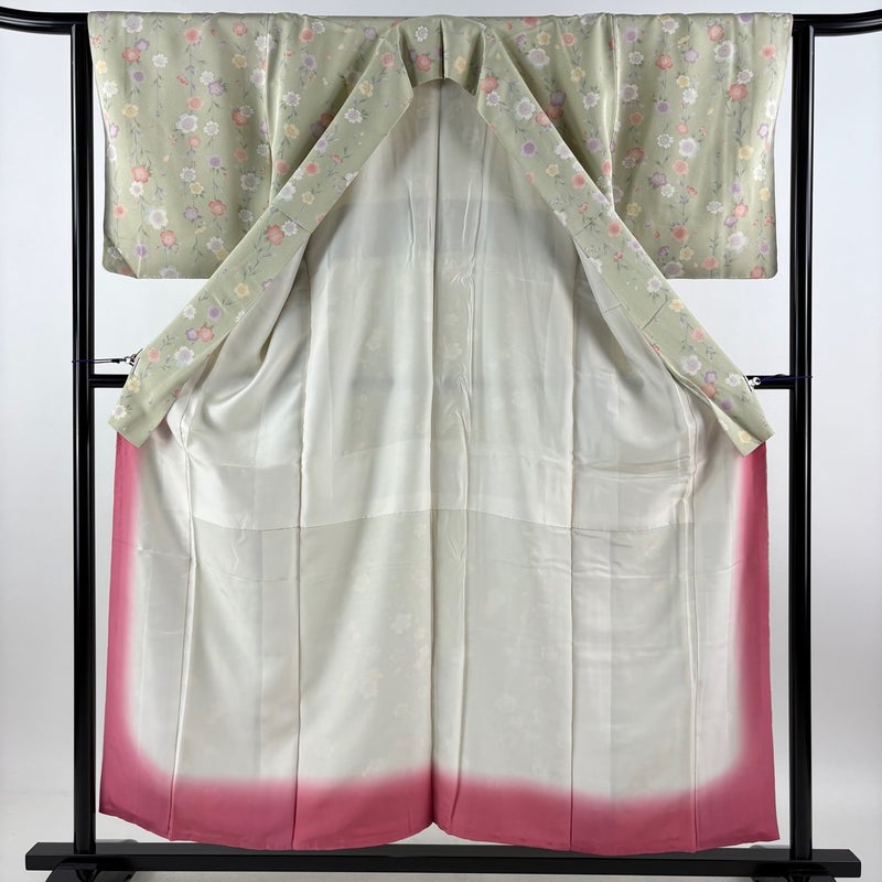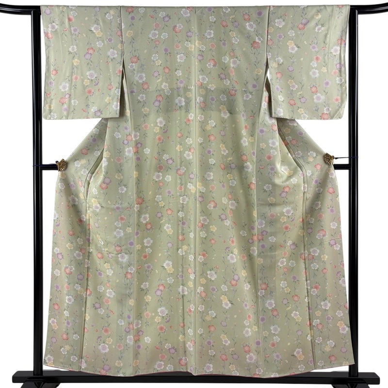 【小紋】 緑系 薄緑 秀品 A 約150cm~約159cm 裄丈63cm-64cm (S)size 袖丈49cm 7990-9980 美品 二万以下