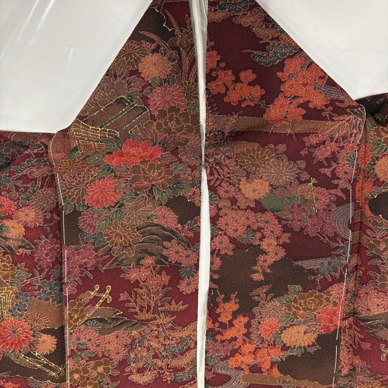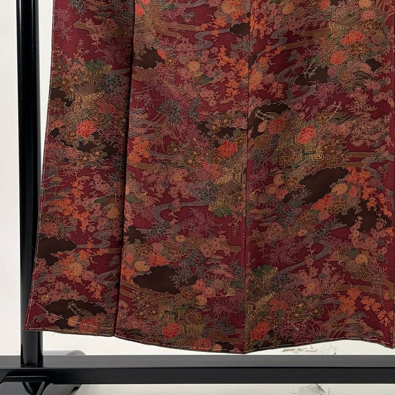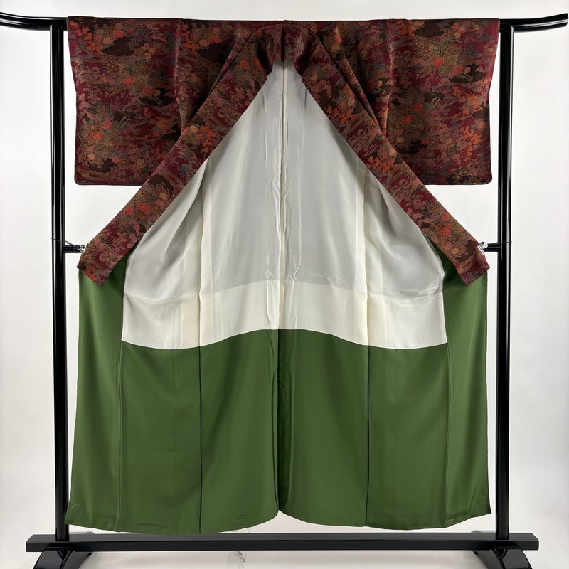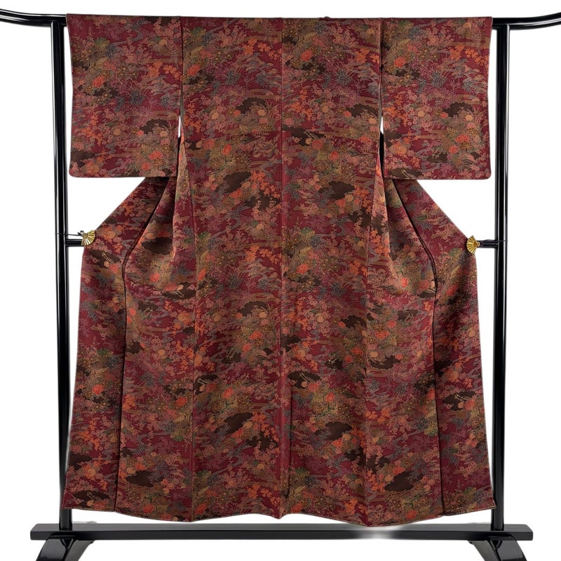 【着物ランク】優品 【素材】正絹 【身丈】約152.5cm 【裄丈】約63cm 【袖丈】約49cm 【袖幅】約33cm 【前幅】約24cm 【後幅】約30cm 【サイズ】S 【着物仕立て】袷 【着用時期】10~5月 【状態ランク】ランクB 【着物着用シーン】気軽なパーティー、観劇、食事会、正月、気軽なお茶会、街着