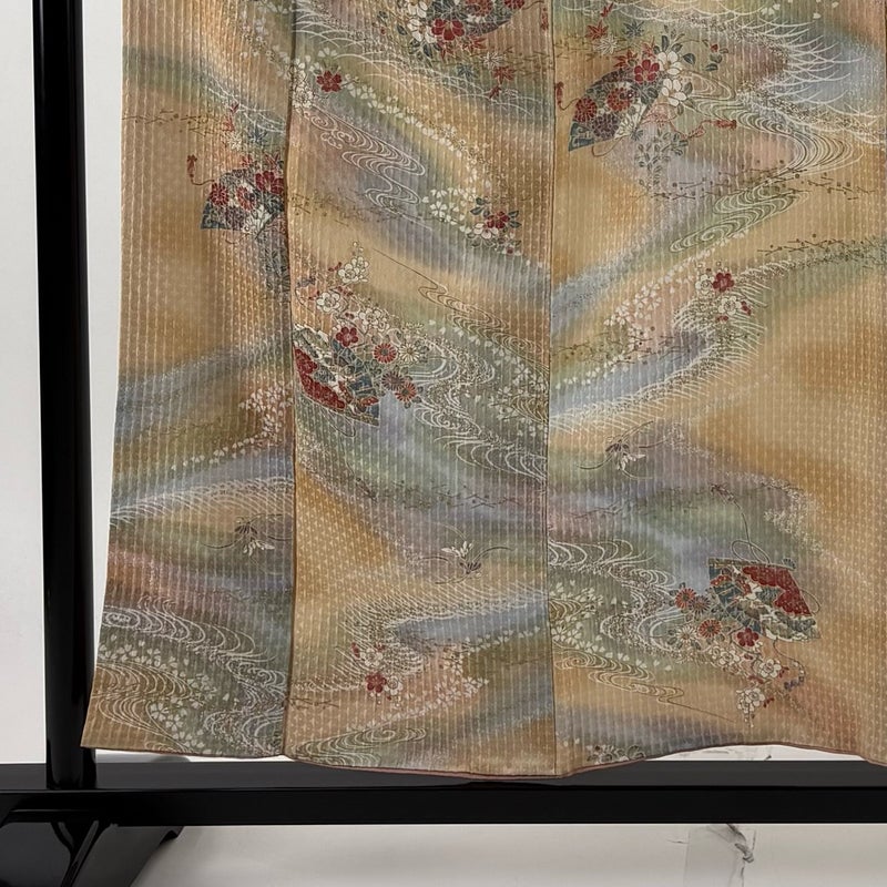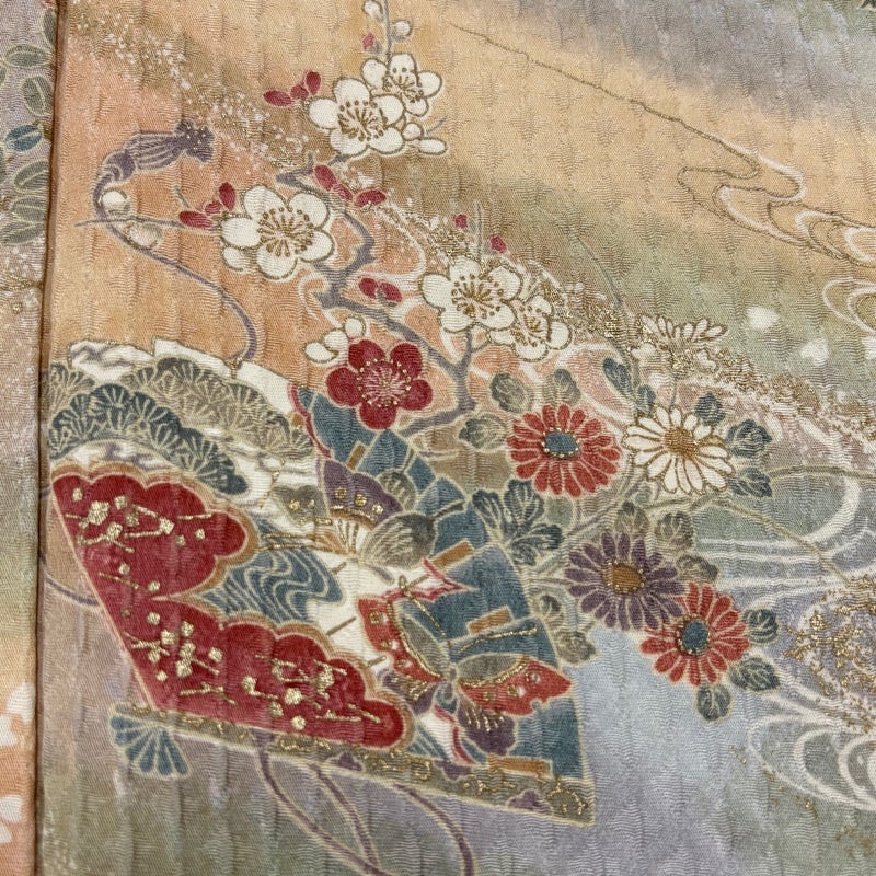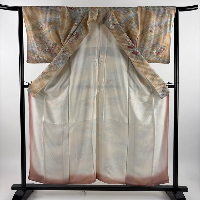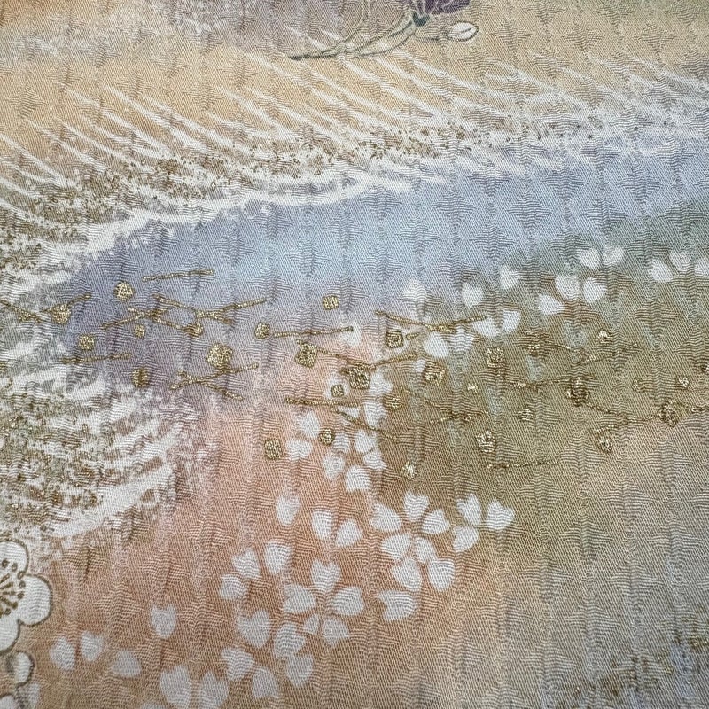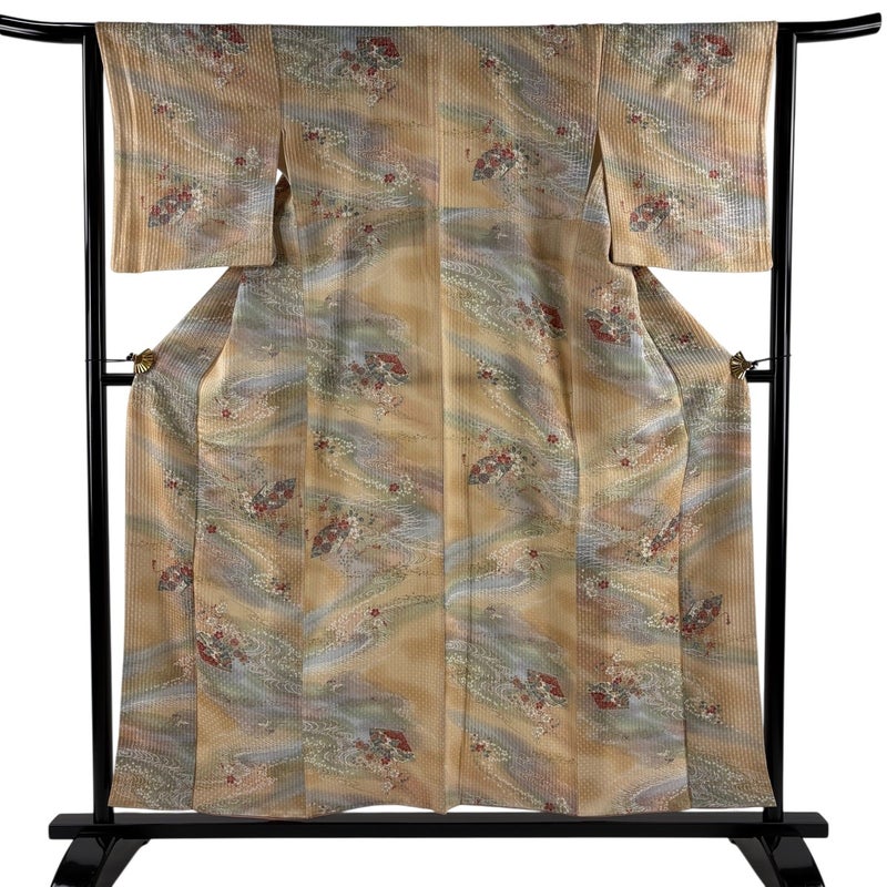 【着物ランク】優品 【素材】正絹 【身丈】約156cm 【裄丈】約64cm 【袖丈】約48cm 【袖幅】約33cm 【前幅】約23cm 【後幅】約30cm 【サイズ】M 【着物仕立て】袷 【着用時期】10~5月 【状態ランク】ランクB 【着物着用シーン】気軽なパーティー、観劇、食事会、正月、気軽なお茶会、街着