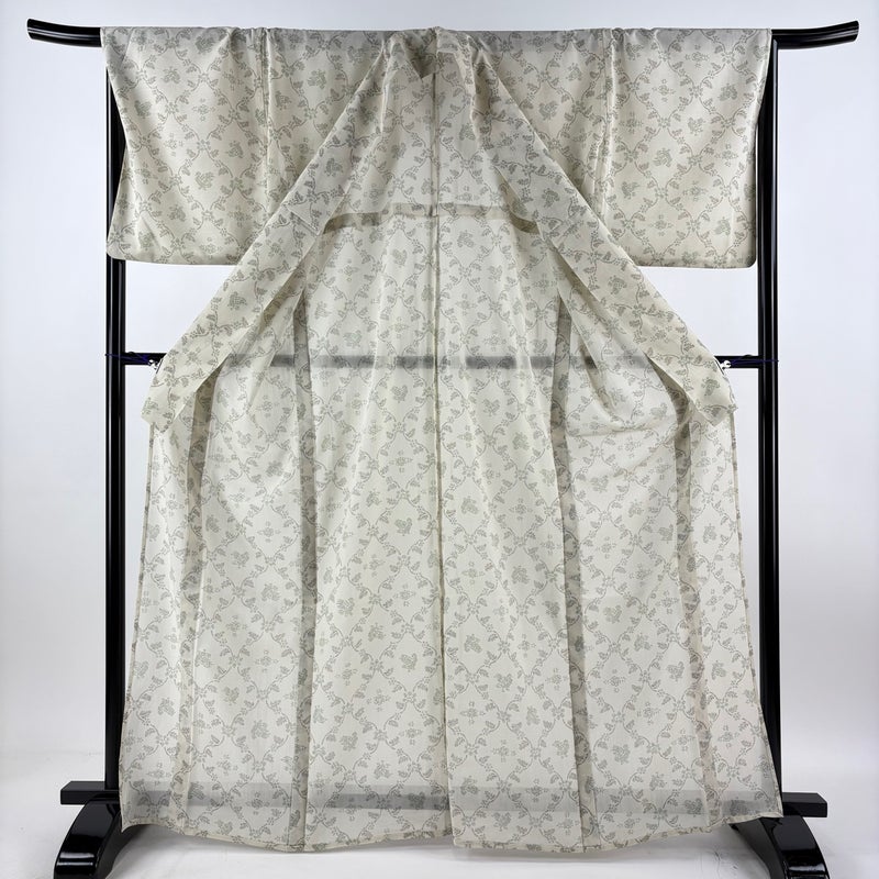 【小紋】 白系 ベージュ 優品 A 約160cm~約169cm 裄丈67cm-68cm (L)size 袖丈49cm 4000-7980 美品 二万以下