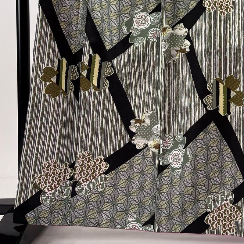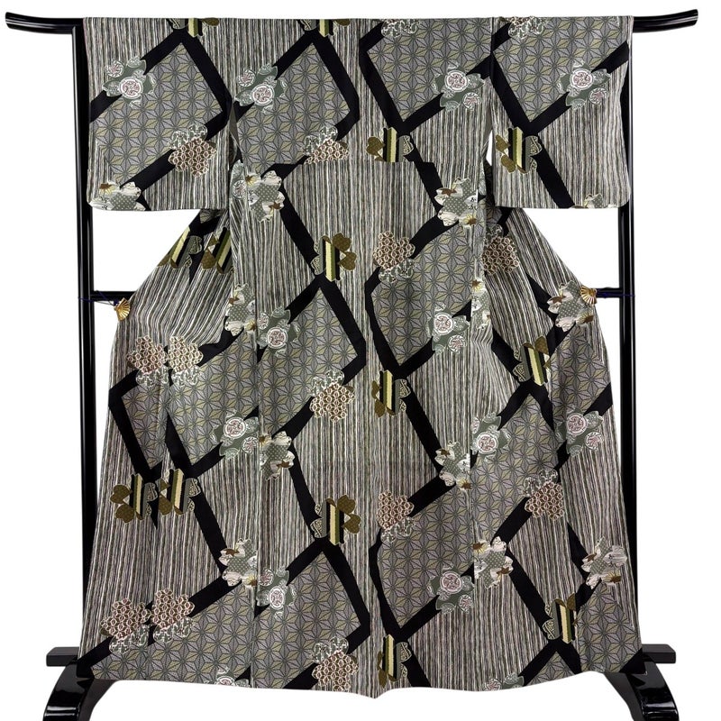 【小紋】 灰色系 灰緑 優品 B 約160cm~約169cm 裄丈66cm (M)size 袖丈49cm -3980 二万以下