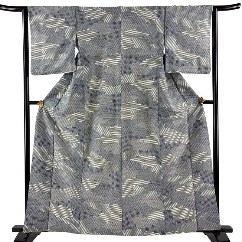 【小紋】 灰色系 青灰色 優品 A 約160cm~約169cm 裄丈63cm-64cm (S)size 袖丈50cm-60cm 4000-7980 美品 二万以下