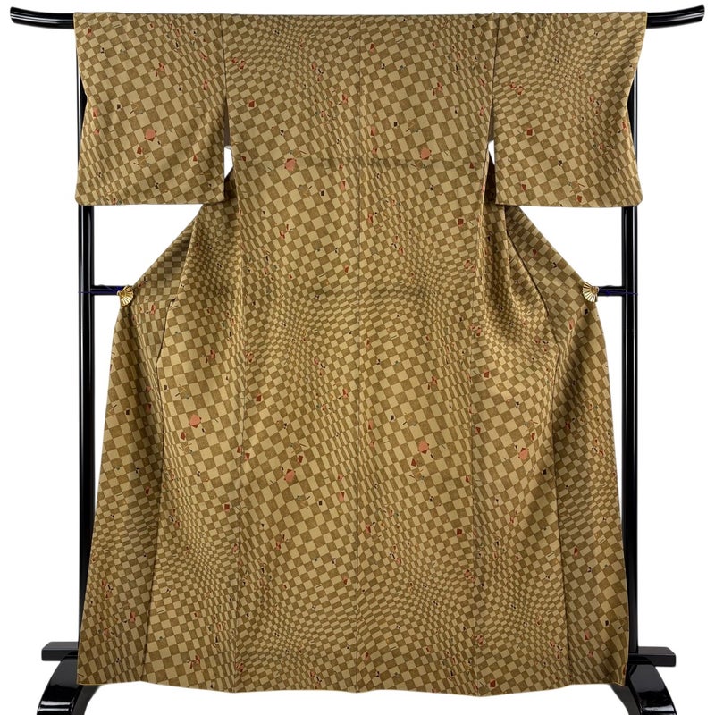 【小紋】 茶系 薄茶色 優品 A 約160cm~約169cm 裄丈67cm-68cm (L)size 袖丈49cm 4000-7980 美品 二万以下