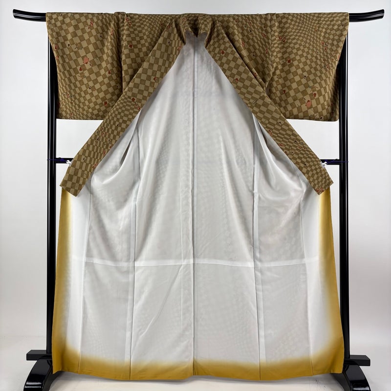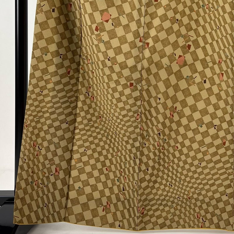 【着物ランク】優品 【素材】化繊 【身丈】約166cm 【裄丈】約68.5cm 【袖丈】約49cm 【袖幅】約35cm 【前幅】約23.5cm 【後幅】約30cm 【サイズ】L 【着物仕立て】袷 【着用時期】10~5月 【状態ランク】ランクA 【着物着用シーン】気軽なパーティー、観劇、食事会、正月、気軽なお茶会、街着