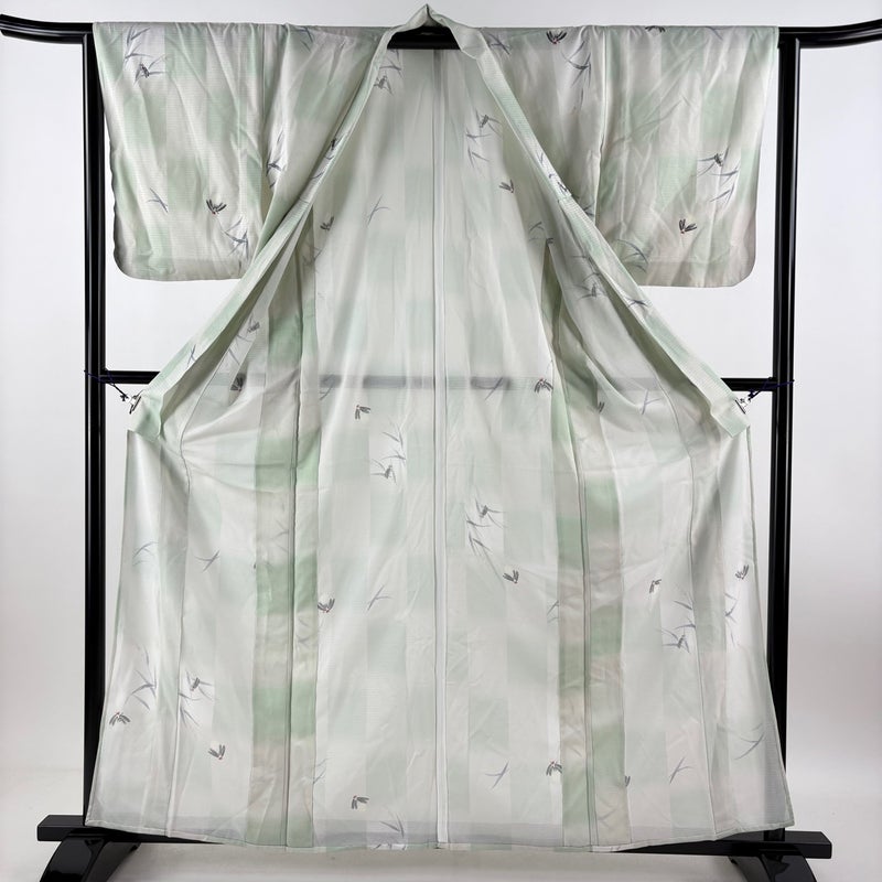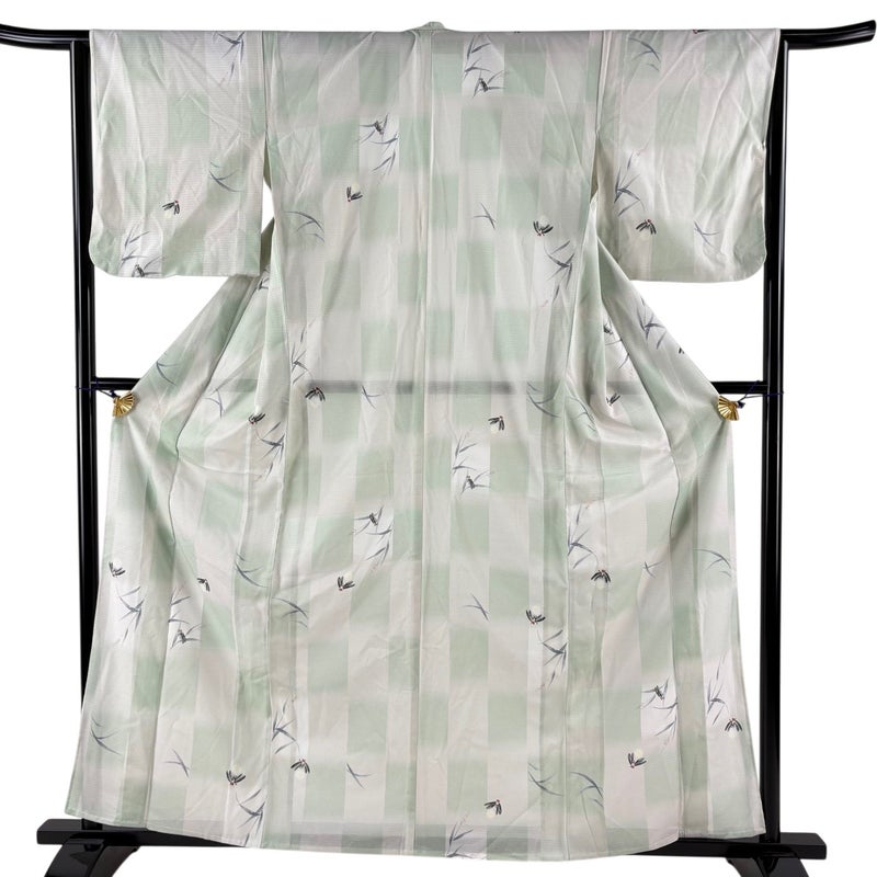 【小紋】 緑系 薄緑 秀品 B 約160cm~約169cm 裄丈63cm-64cm (M)size 袖丈49cm 9990-29990 二万以下