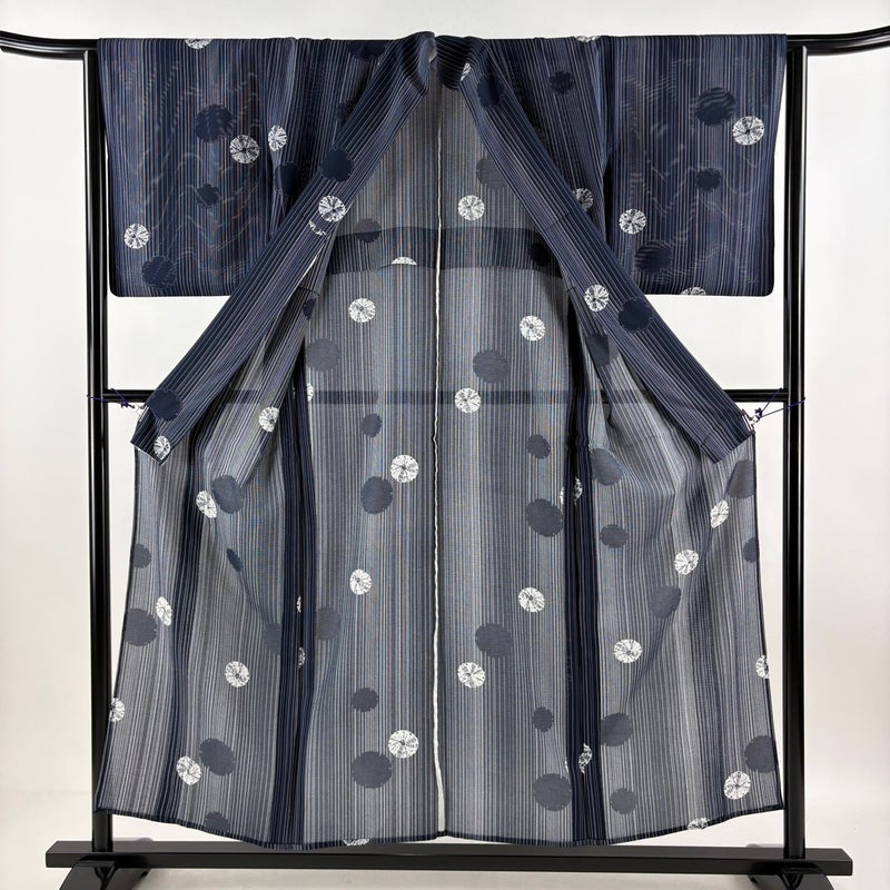 【着物ランク】秀品 【素材】正絹 【身丈】約153.5cm 【裄丈】約62.5cm 【袖丈】約49cm 【袖幅】約32cm 【前幅】約22.5cm 【後幅】約28.5cm 【サイズ】S 【着物仕立て】薄物 【着用時期】7~8月 【状態ランク】ランクB 【着物着用シーン】気軽なパーティー、観劇、食事会、正月、気軽なお茶会、街着