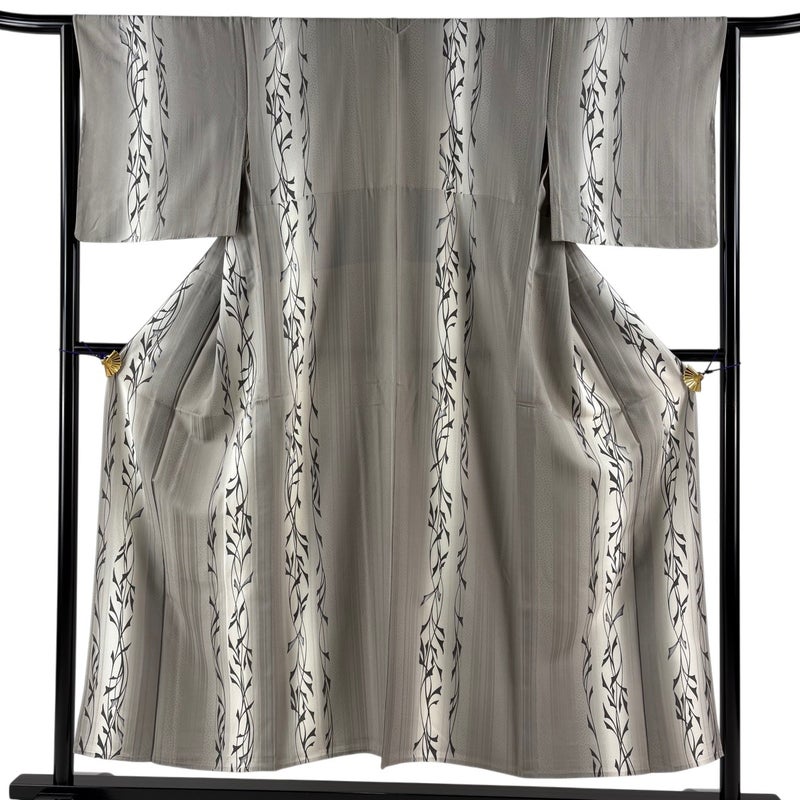【着物ランク】秀品 【素材】正絹 【身丈】約152cm 【裄丈】約65cm 【袖丈】約47.5cm 【袖幅】約33cm 【前幅】約25cm 【後幅】約30.5cm 【サイズ】M 【着物仕立て】単衣 【着用時期】6/9月 【状態ランク】ランクA 【着物着用シーン】気軽なパーティー、観劇、食事会、正月、気軽なお茶会、街着