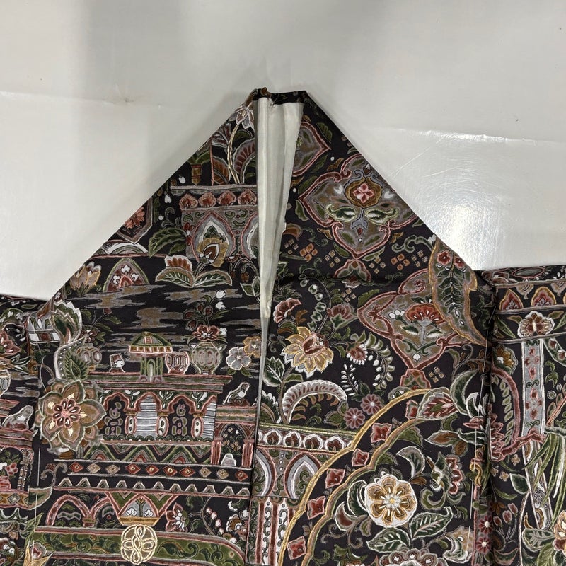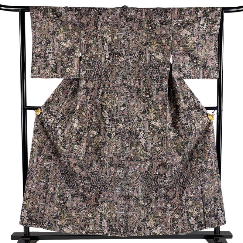 【着物ランク】逸品 【素材】正絹 【身丈】約156.5cm 【裄丈】約63cm 【袖丈】約48.5cm 【袖幅】約32.5cm 【前幅】約27cm 【後幅】約30.5cm 【サイズ】S 【着物仕立て】袷 【着用時期】10~5月 【状態ランク】ランクA 【着物着用シーン】気軽なパーティー、観劇、食事会、正月、気軽なお茶会、街着