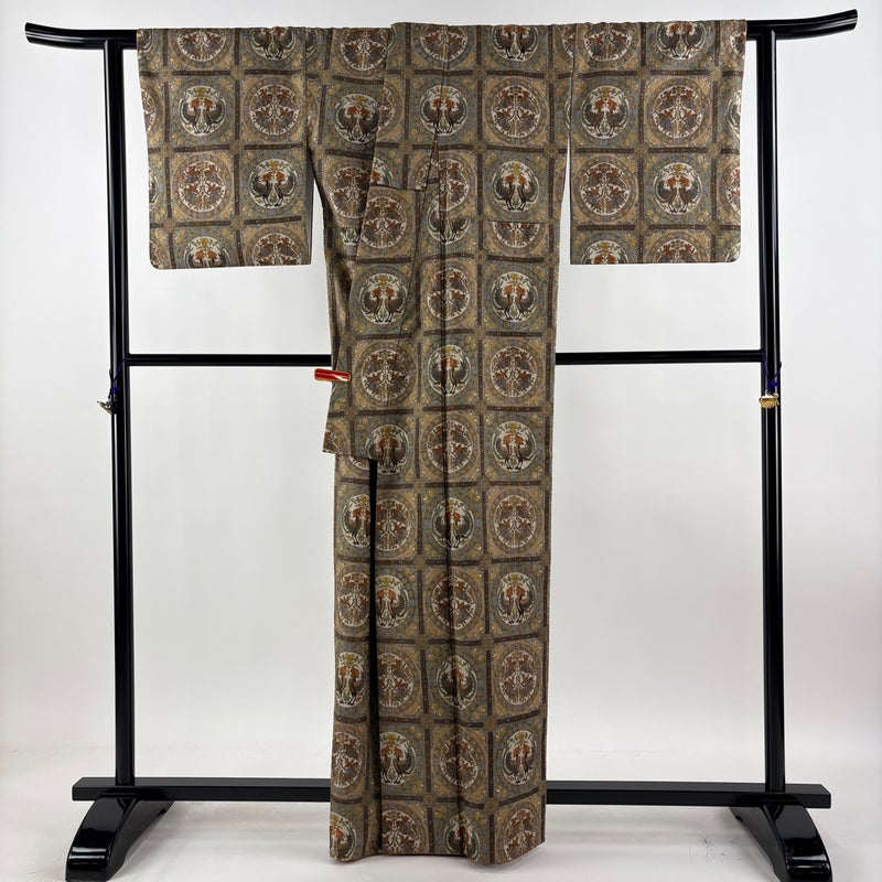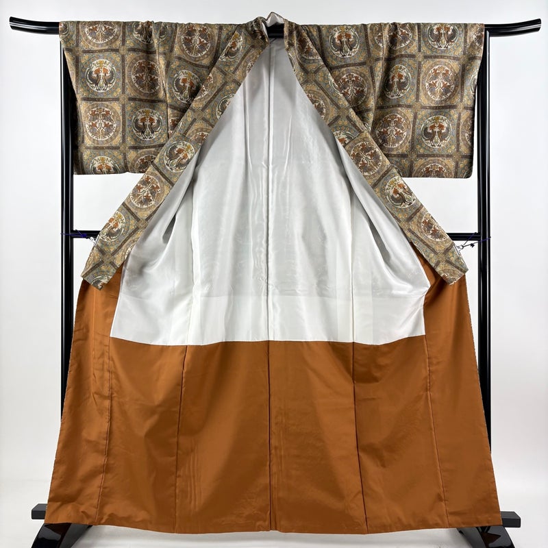 【着物ランク】逸品 【素材】正絹 【身丈】約163.5cm 【裄丈】約67cm 【袖丈】約48.5cm 【袖幅】約33.5cm 【前幅】約24cm 【後幅】約30cm 【サイズ】M 【着物仕立て】袷 【着用時期】10~5月 【状態ランク】ランクB 【着物着用シーン】気軽なパーティー、観劇、食事会、正月、気軽なお茶会、街着