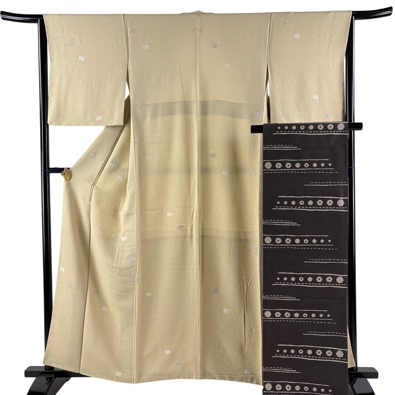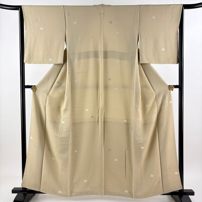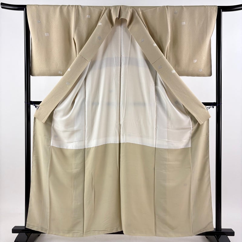【小紋】 白系 ベージュ 秀品 A 約150cm~約159cm 裄丈63cm-64cm (M)size 袖丈48cm 9990-29990 美品 五万以下