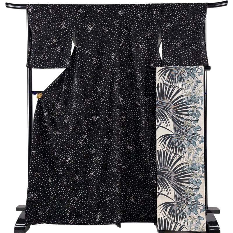 【小紋】 黒系 黒 秀品 A 約160cm~約169cm 裄丈67cm-68cm (L)size 袖丈50cm-60cm 9990-29990 美品 五万以下