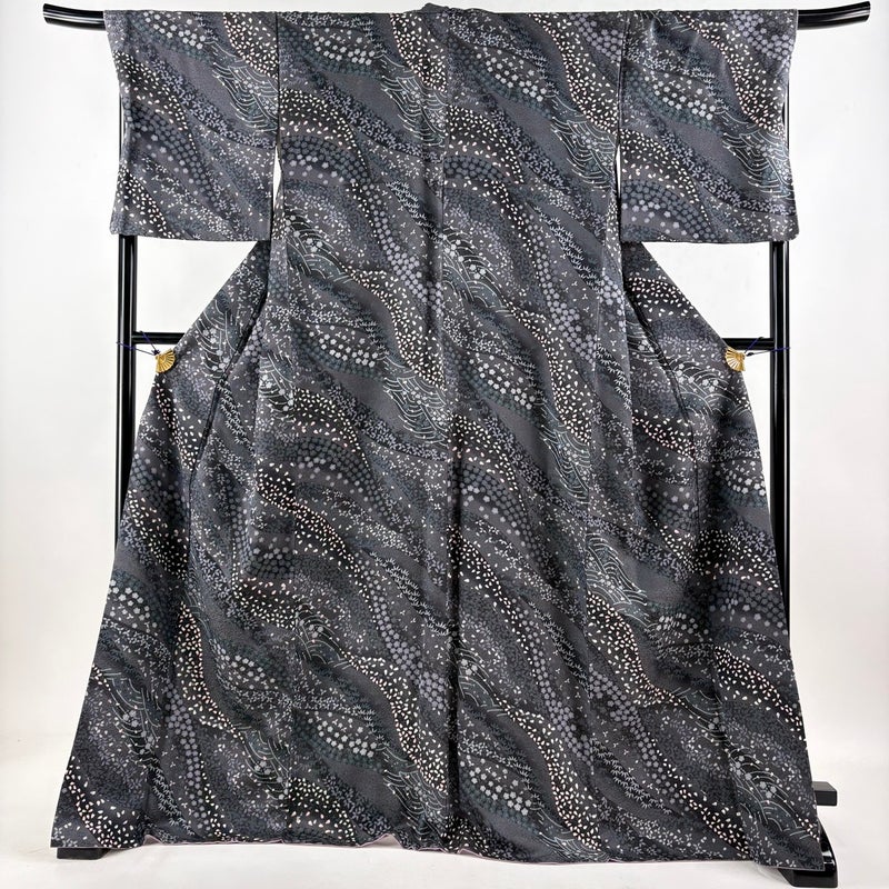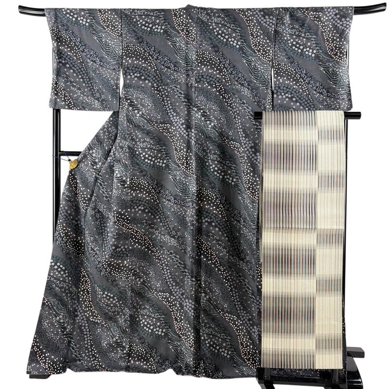 【小紋】 灰色系 灰色 秀品 A 約170cm~約179cm 裄丈69cm以上 (L)size 袖丈49cm 9990-29990 美品 五万以下