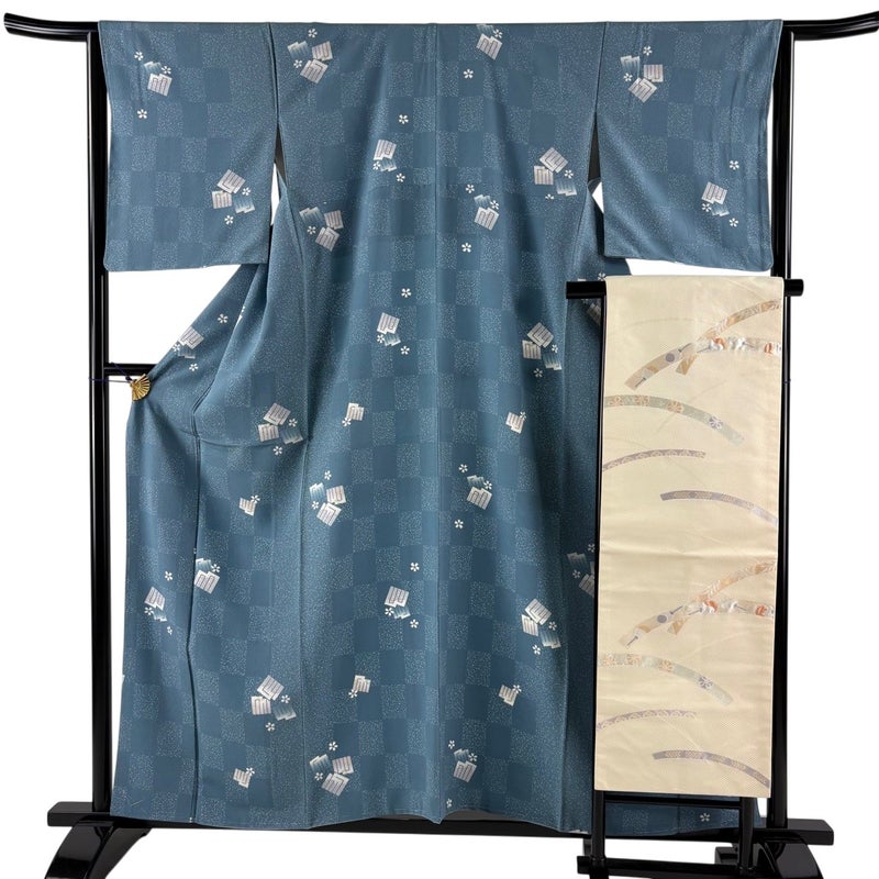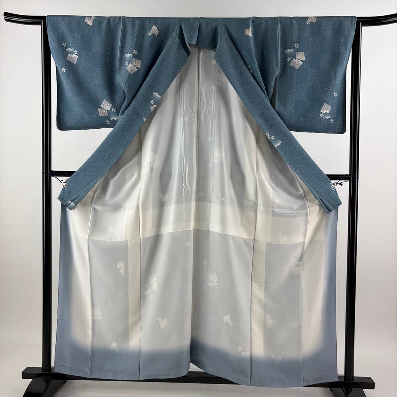 【小紋】 灰色系 青灰色 秀品 B 約150cm~約159cm 裄丈63cm-64cm (M)size 袖丈49cm 9990-29990 五万以下