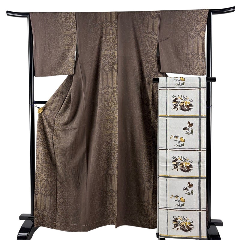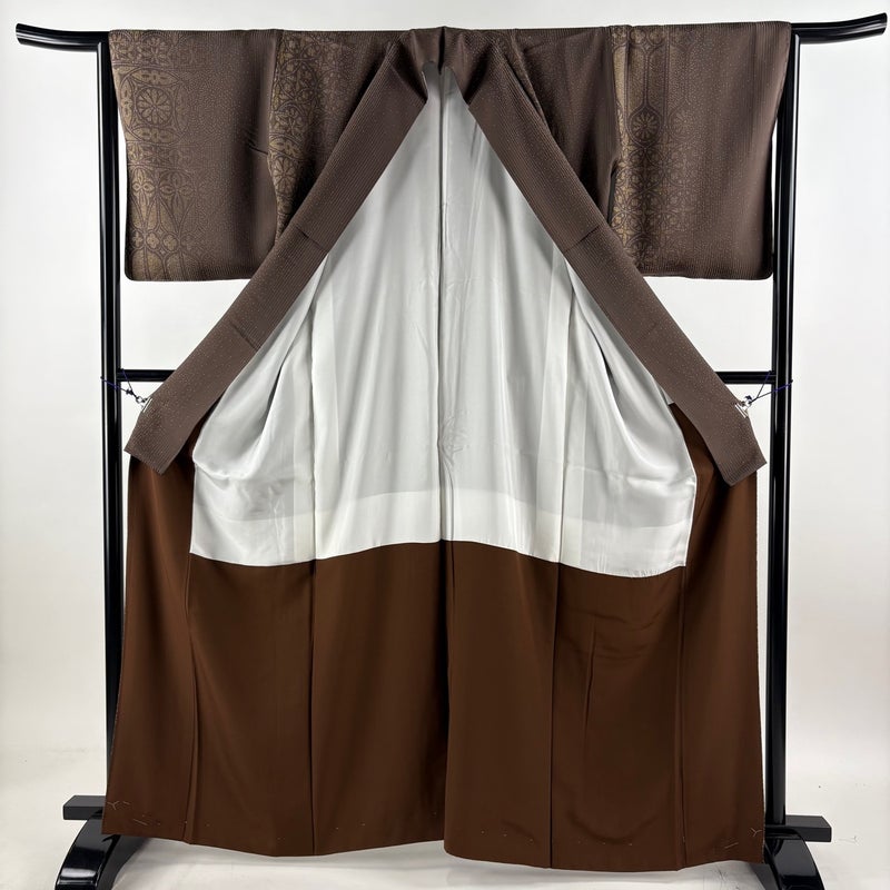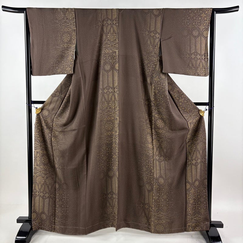 【小紋】 茶系 茶色 秀品 A 約160cm~約169cm 裄丈63cm-64cm (M)size 袖丈48cm 9990-29990 美品 五万以下