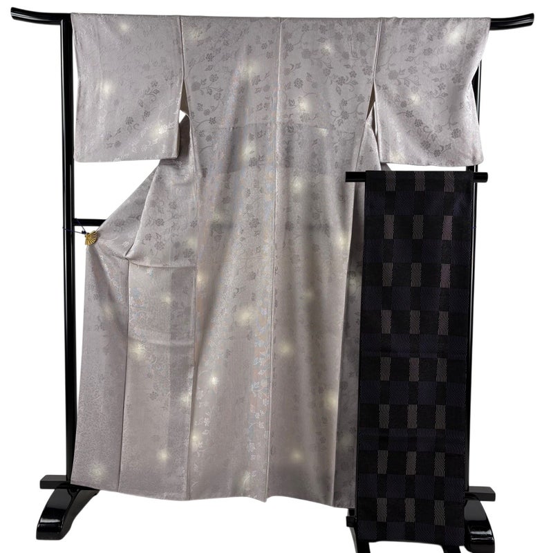 【着物ランク】名品 【素材】正絹 【身丈】約161cm 【裄丈】約65.5cm 【袖丈】約48.5cm 【袖幅】約34.5cm 【前幅】約24cm 【後幅】約29cm 【サイズ】M 【着物仕立て】袷 【着用時期】10~5月 【帯丈2】約452cm 【帯幅2】約32cm 【状態ランク】ランクB 【着物着用シーン】気軽なパーティー、観劇、食事会、正月、気軽なお茶会、街着