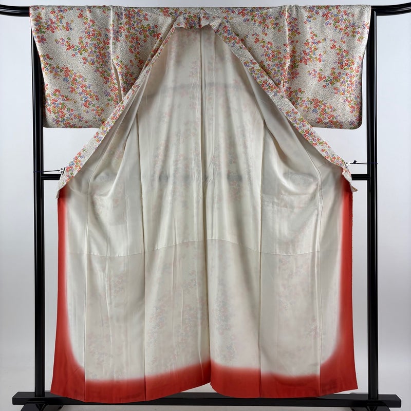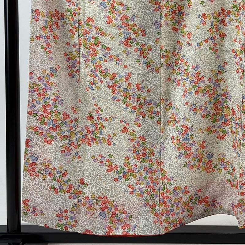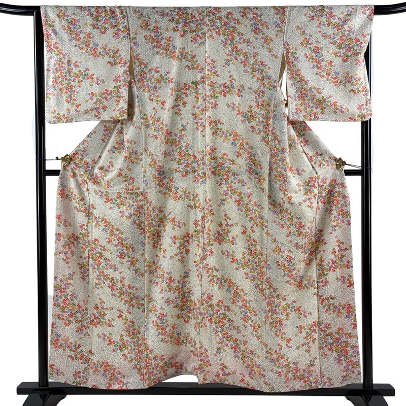 【着物ランク】優品 【素材】正絹 【身丈】約154cm 【裄丈】約66cm 【袖丈】約49cm 【袖幅】約33.5cm 【前幅】約24cm 【後幅】約29.5cm 【サイズ】M 【着物仕立て】袷 【着用時期】10~5月 【状態ランク】ランクA 【着物着用シーン】気軽なパーティー、観劇、食事会、正月、気軽なお茶会、街着