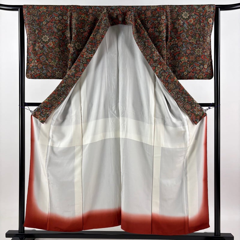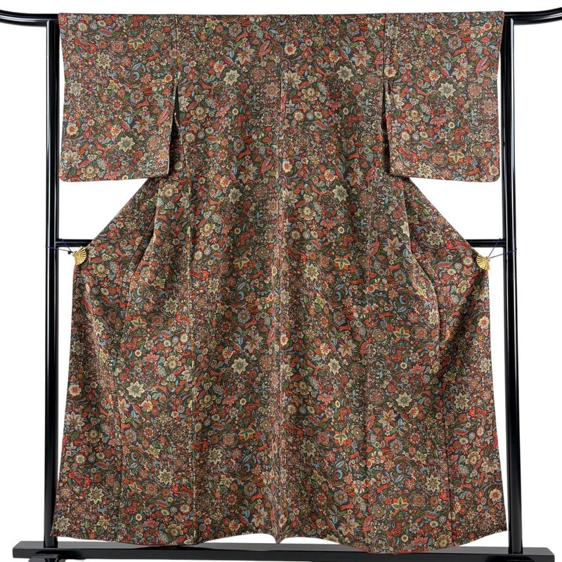 【着物ランク】優品 【素材】正絹 【身丈】約155cm 【裄丈】約63cm 【袖丈】約51cm 【袖幅】約33.5cm 【前幅】約25cm 【後幅】約30.5cm 【サイズ】S 【着物仕立て】袷 【着用時期】10~5月 【状態ランク】ランクA 【着物着用シーン】気軽なパーティー、観劇、食事会、正月、気軽なお茶会、街着