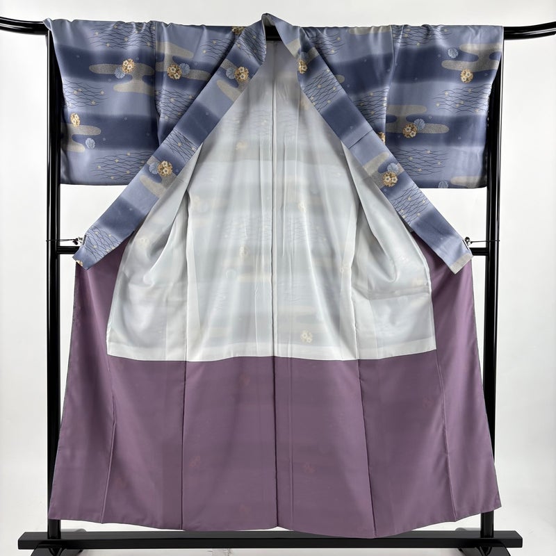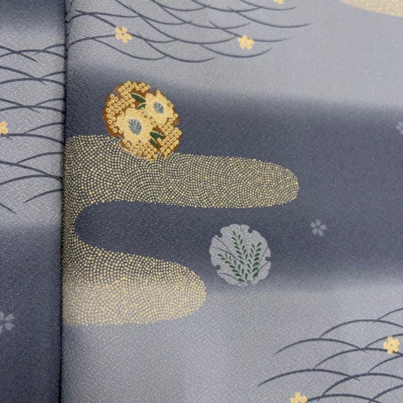 【小紋】 灰色系 青灰色 優品 B 約150cm~約159cm 裄丈69cm以上 (L)size 袖丈49cm -3980 二万以下