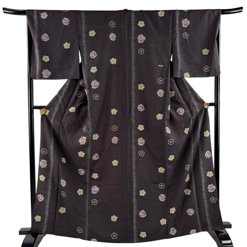 お洒落着として楽しめる小紋でございます。 お稽古や観劇、同窓会や友人との食事会など様々なシーンで楽しめます。 ※身丈・裄丈の縫込みの長さは測っておりません。 表地所々にシワ、表地所々に金彩の変色がございます。 リユース品としては良い状態で、まだまだご活用頂けると思われます。 ※なお、厳しく商品の状態確認を行っておりますが、記載の汚れ以外にも見落とし箇所がある可能性がある旨ご了承いただけますと幸いです。 沢山の商品の中からご覧いただき誠にありがとうございます。