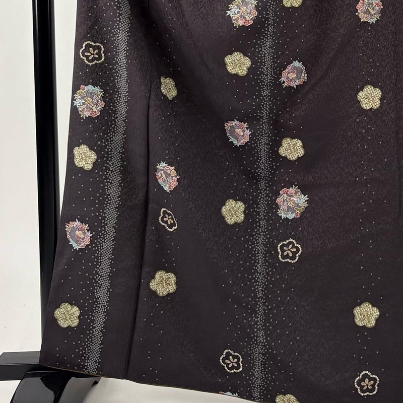 【着物ランク】優品 【素材】化繊 【身丈】約167cm 【裄丈】約67.5cm 【袖丈】約49.5cm 【袖幅】約34cm 【前幅】約24.5cm 【後幅】約29cm 【サイズ】L 【着物仕立て】袷 【着用時期】10~5月 【状態ランク】ランクB 【着物着用シーン】気軽なパーティー、観劇、食事会、正月、気軽なお茶会、街着